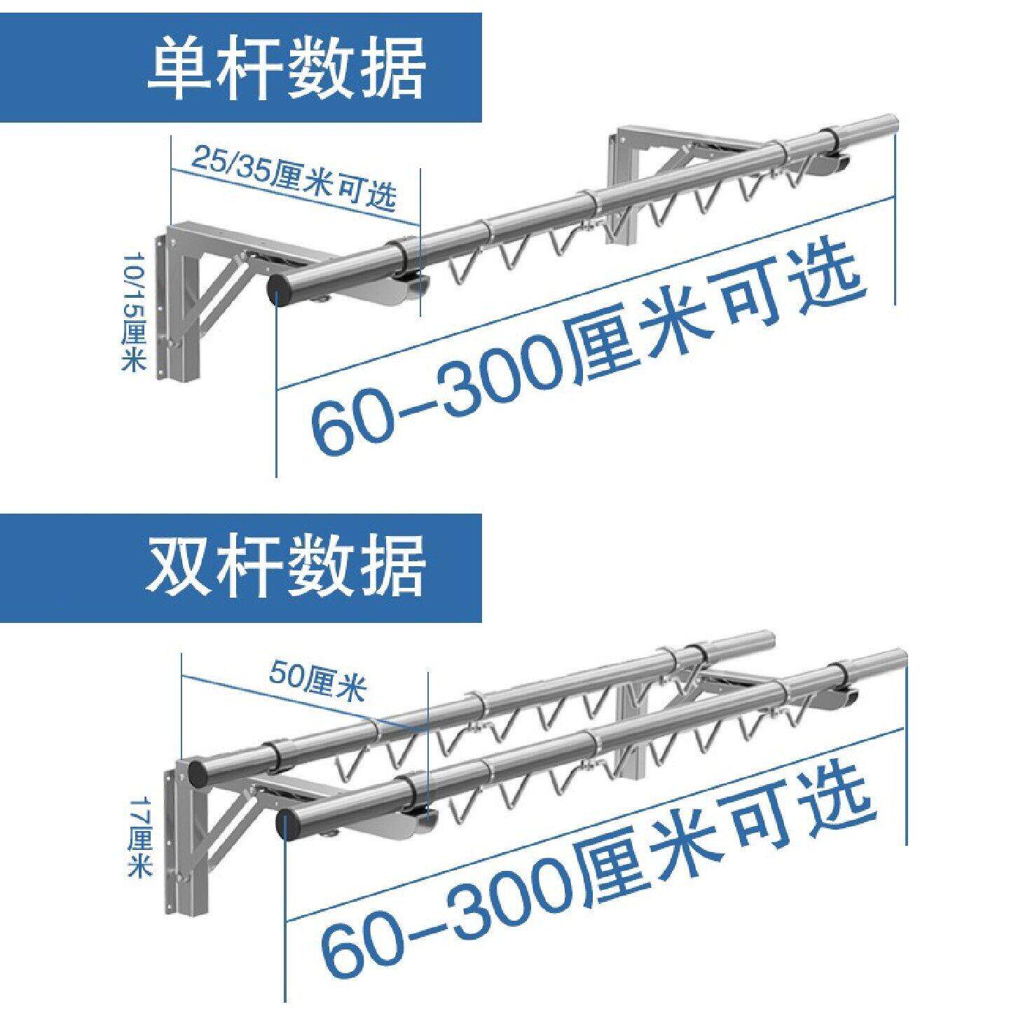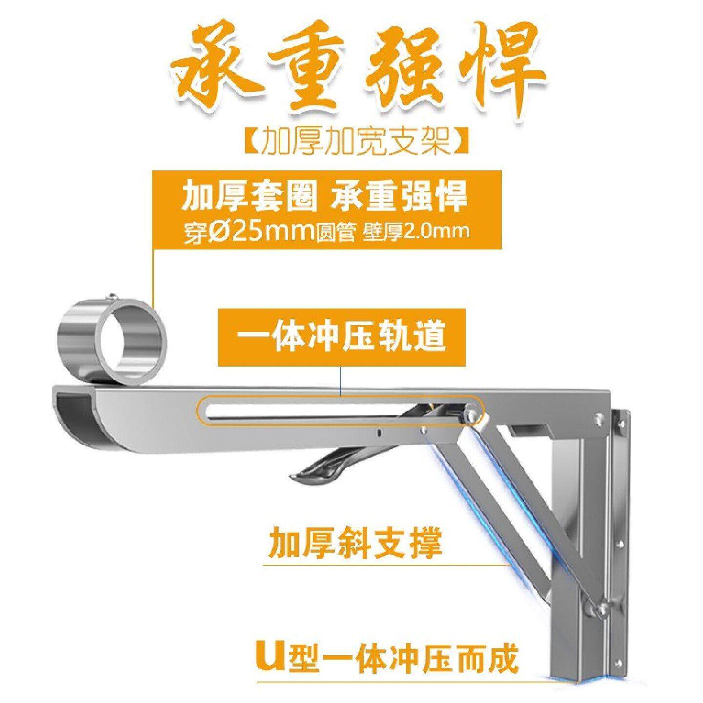 折叠晾衣架阳台不锈钢晾衣杆固定式晒衣杆侧装25管挂衣杆可免打孔