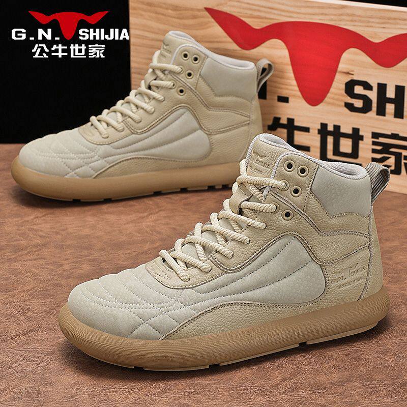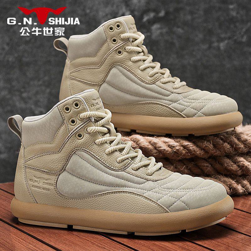 公牛世家高帮男鞋新款秋冬美式复古潮流工装鞋子户外纯皮休闲皮鞋