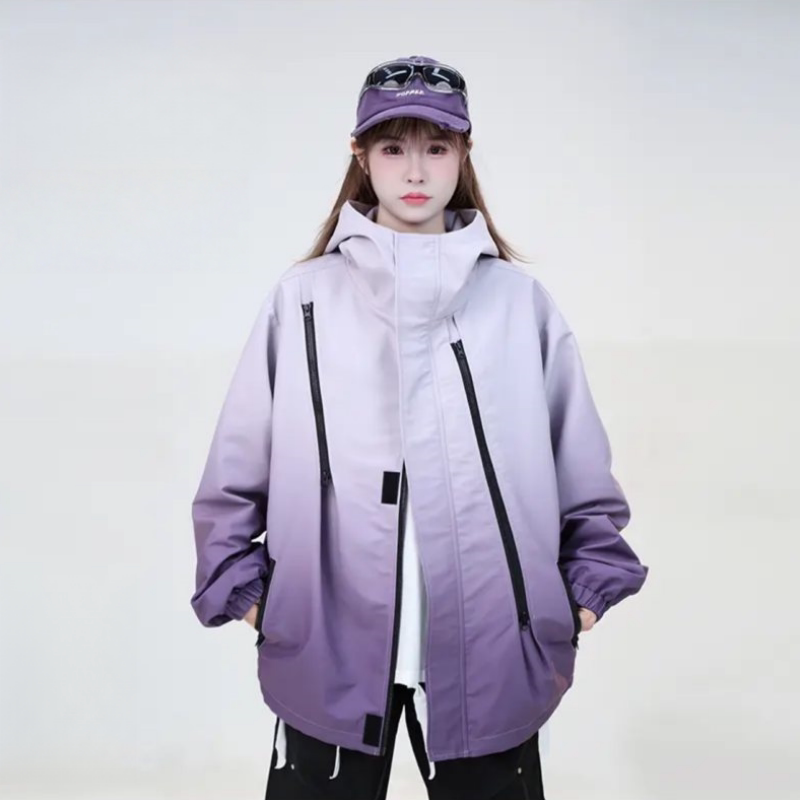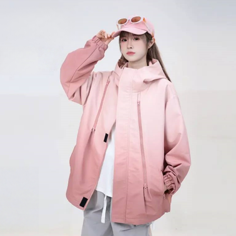 2025年春秋季渐变色户外防风保暖情侣冲锋衣运动休闲夹克男女外套