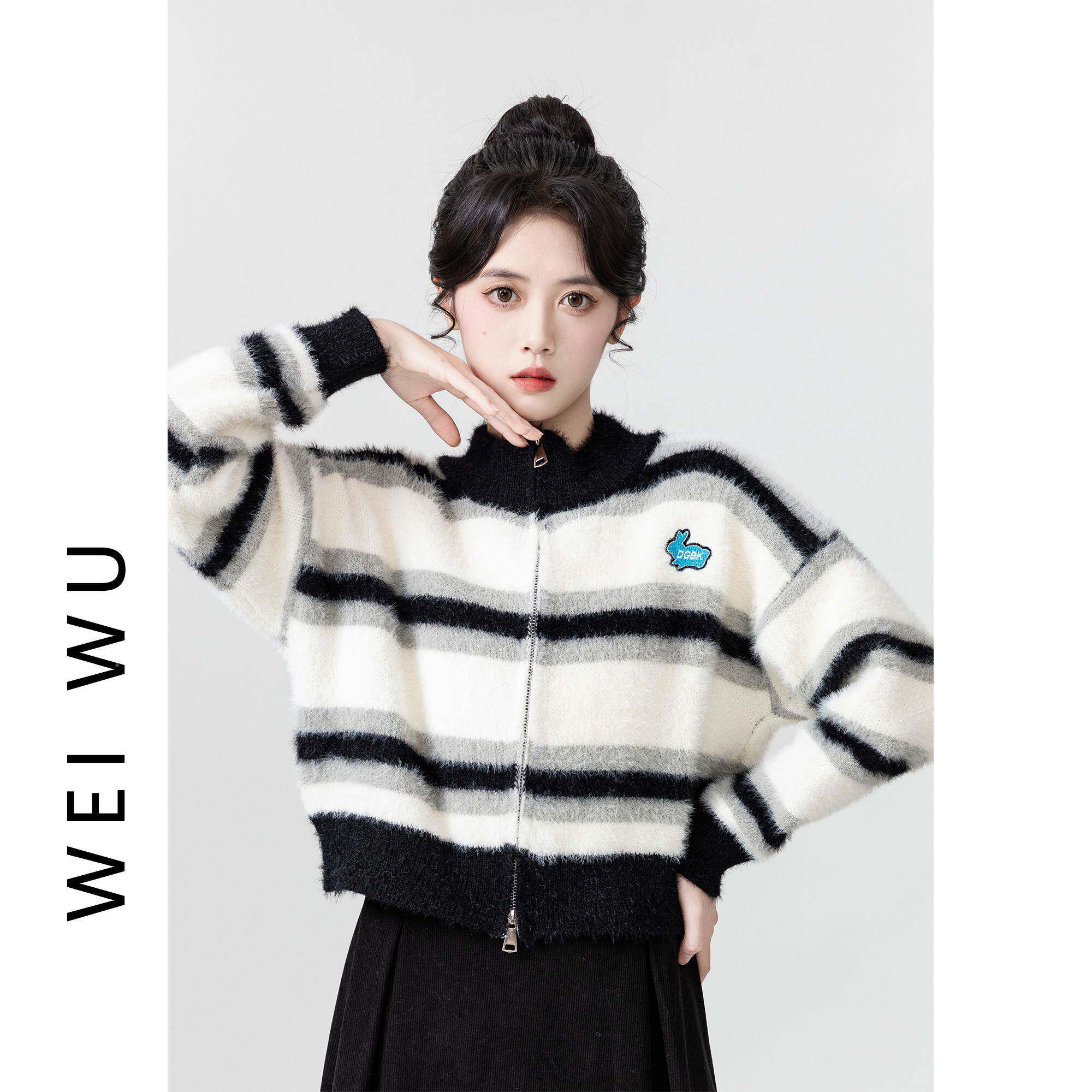 马海短款开衫毛毛衣女XJM1FA04秋冬季202外4新加厚条纹水貂绒款拉