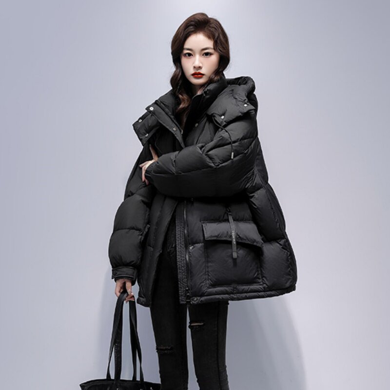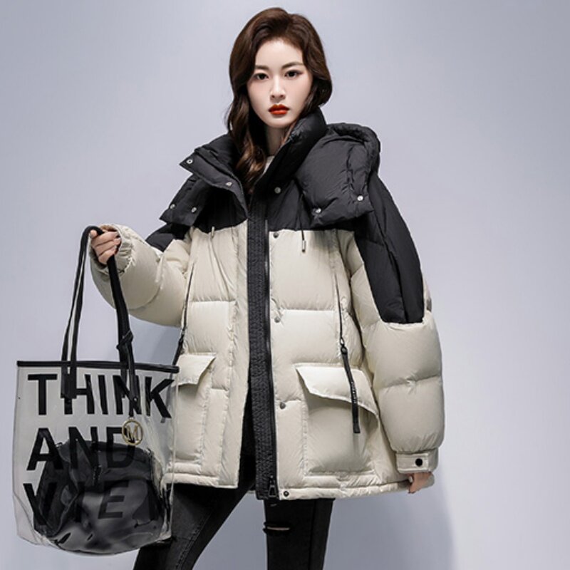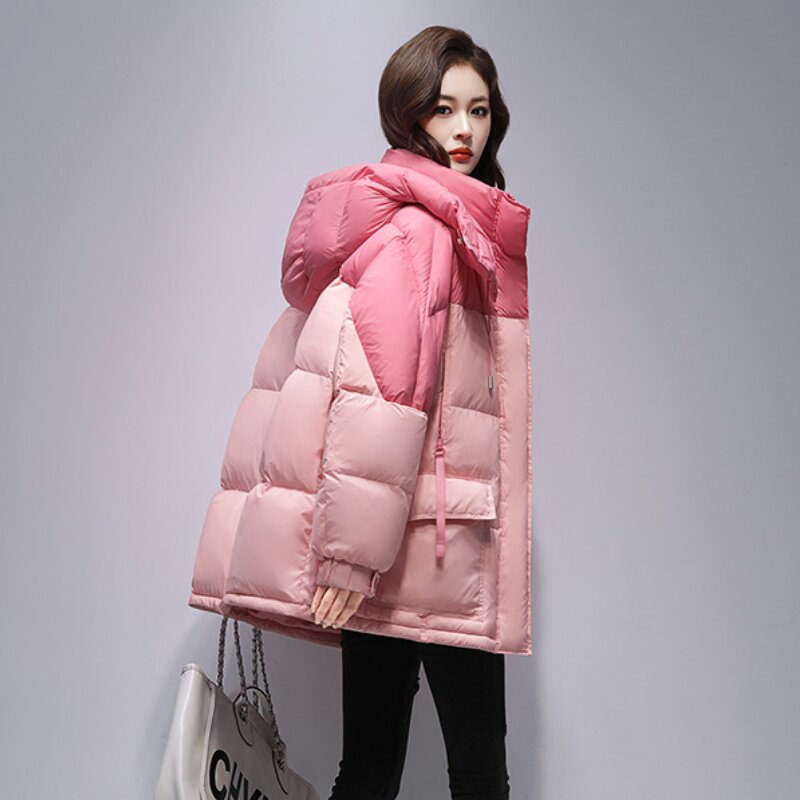 首页> 女装> 2025年冬季新款韩系中长款棉服女时尚休闲显瘦蓬松拼色保暖外套
