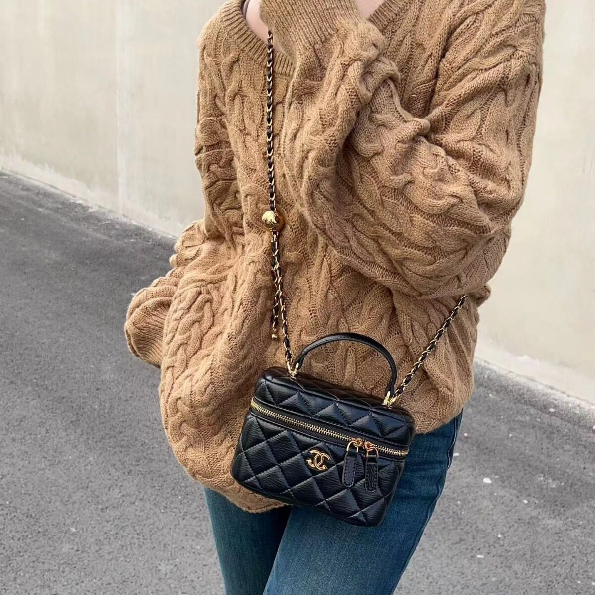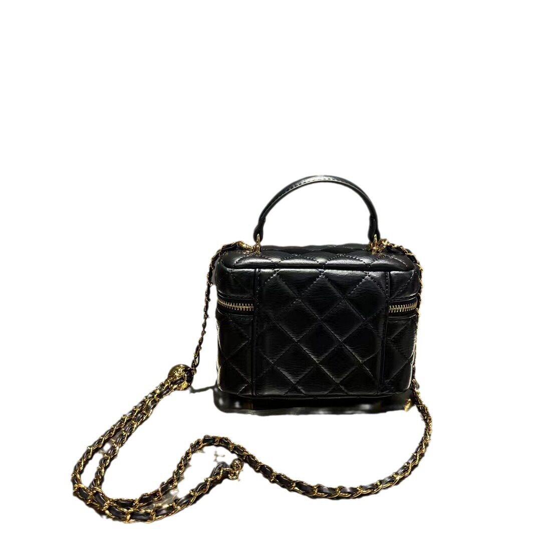 品牌真皮小香风菱格链条包新款盒子手提包时尚女包单肩百搭斜挎包