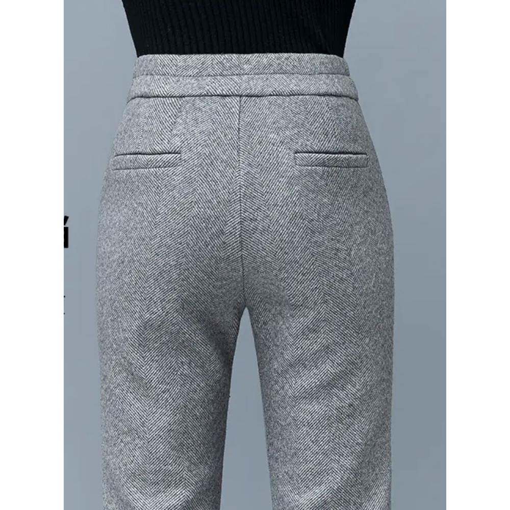 丝绒加厚羊毛女士靴型裤2025秋冬新款裤高腰显瘦时尚温暖休闲裤