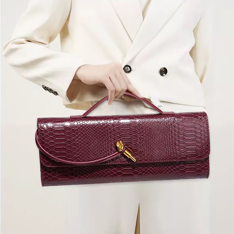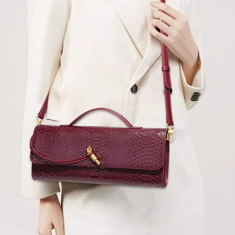 K新款高级感手拿晚宴女包横款潮流复古小众蛇纹单肩斜挎法棍包