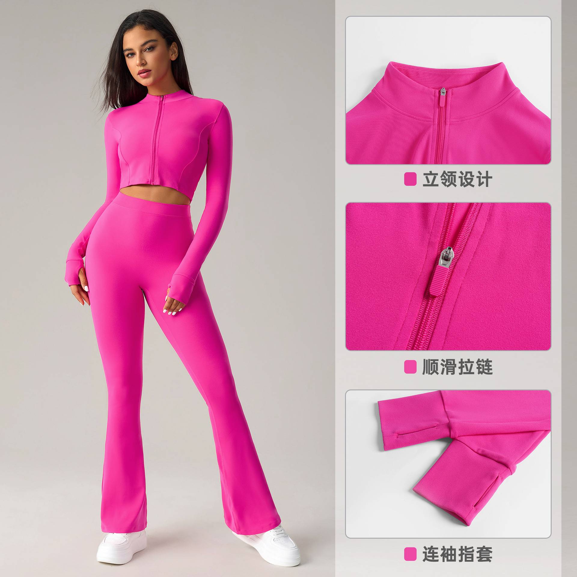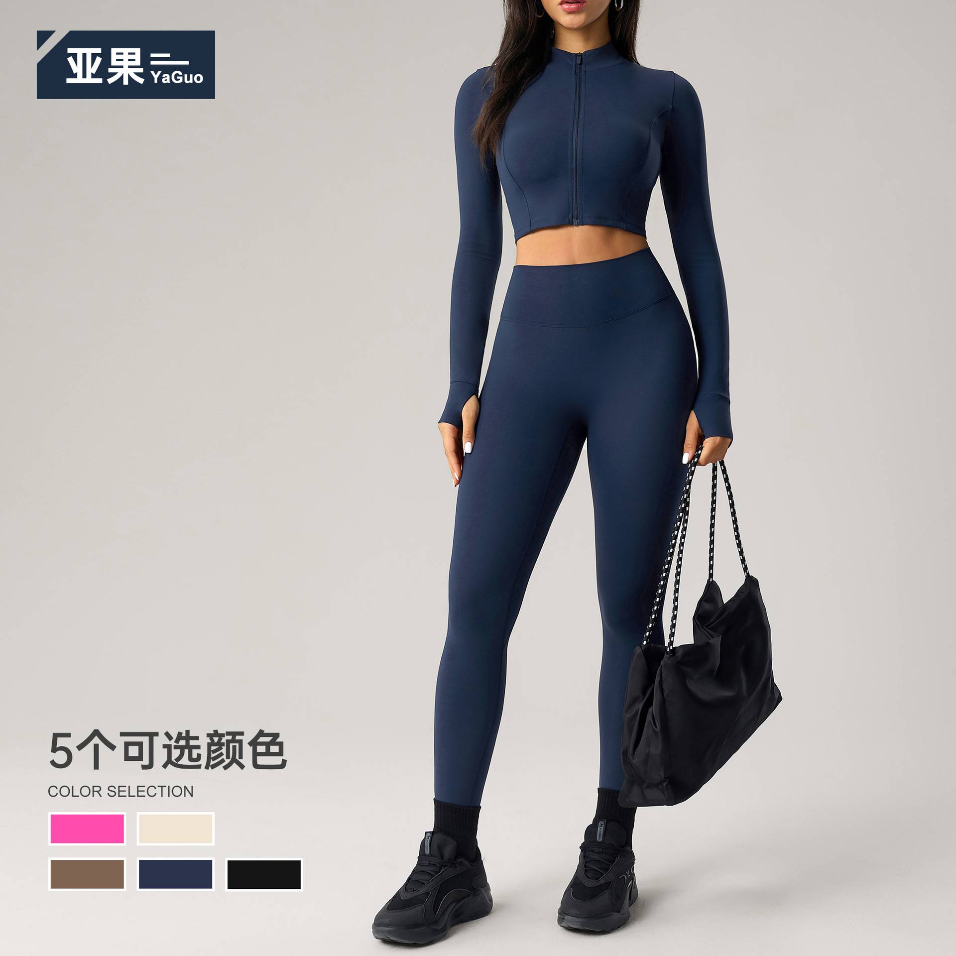 跨境欧美紧身短款拉链运动外套女户外跑步健身瑜伽服长袖DCX011