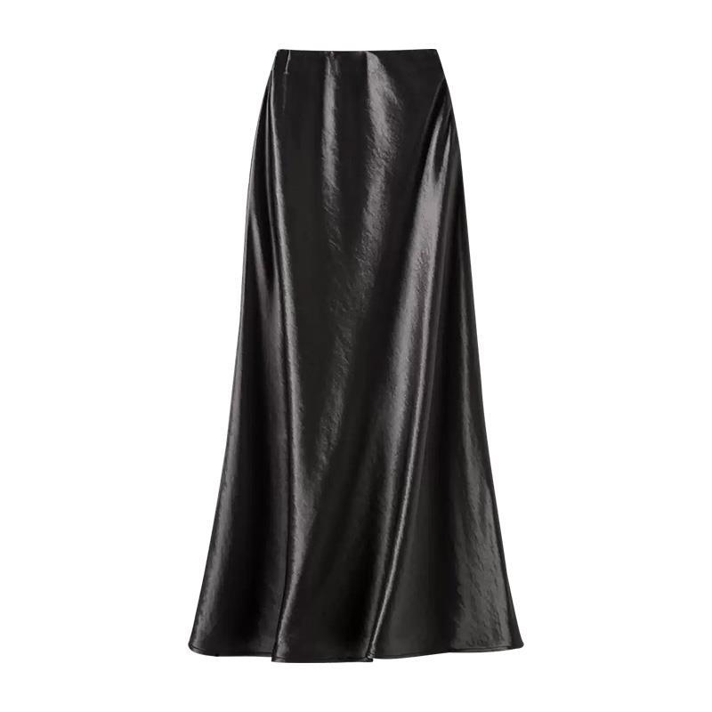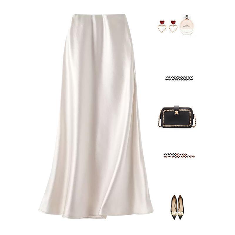 半身裙女夏缎面半裙法式长裙褶皱醋酸鱼尾裙高腰显瘦气质裙子