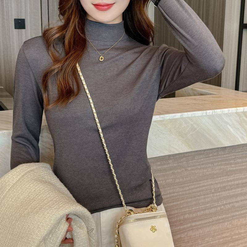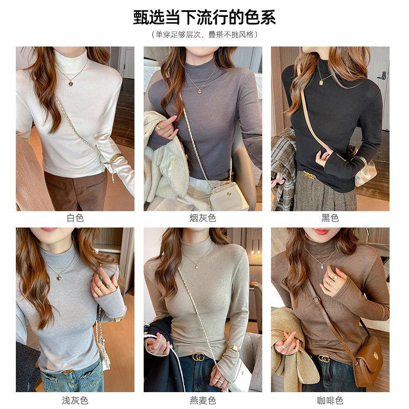 严选新款纯色仿羊绒打底衫女秋冬半高领内搭长袖恤磨毛保暖上衣