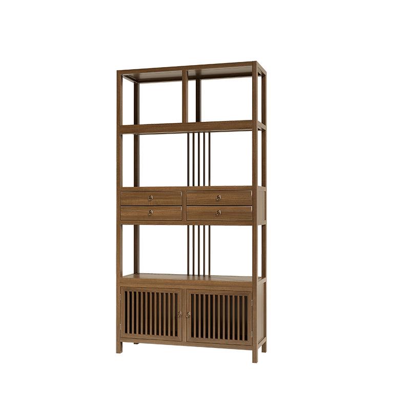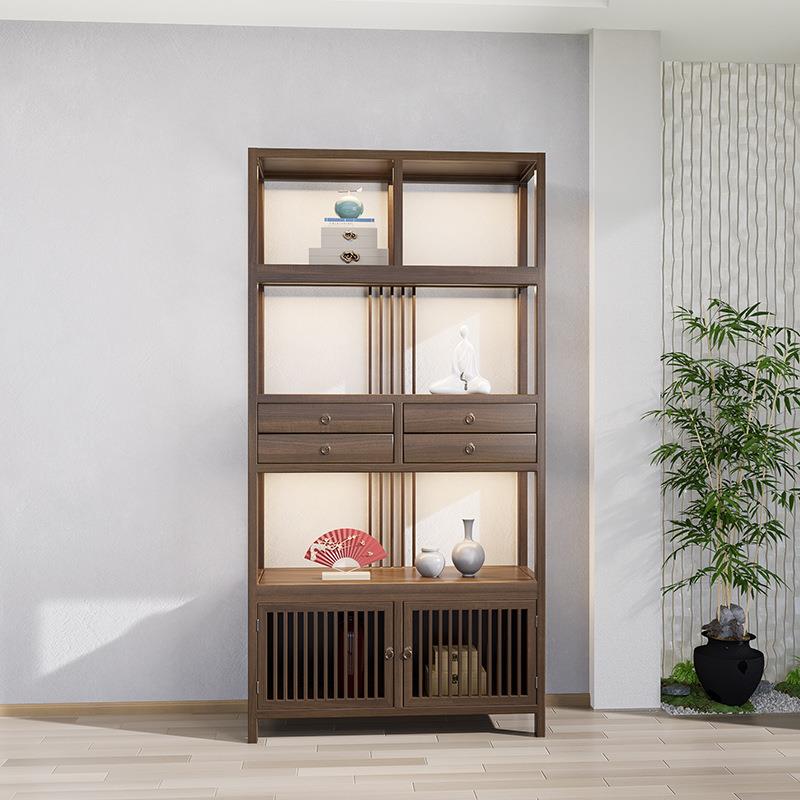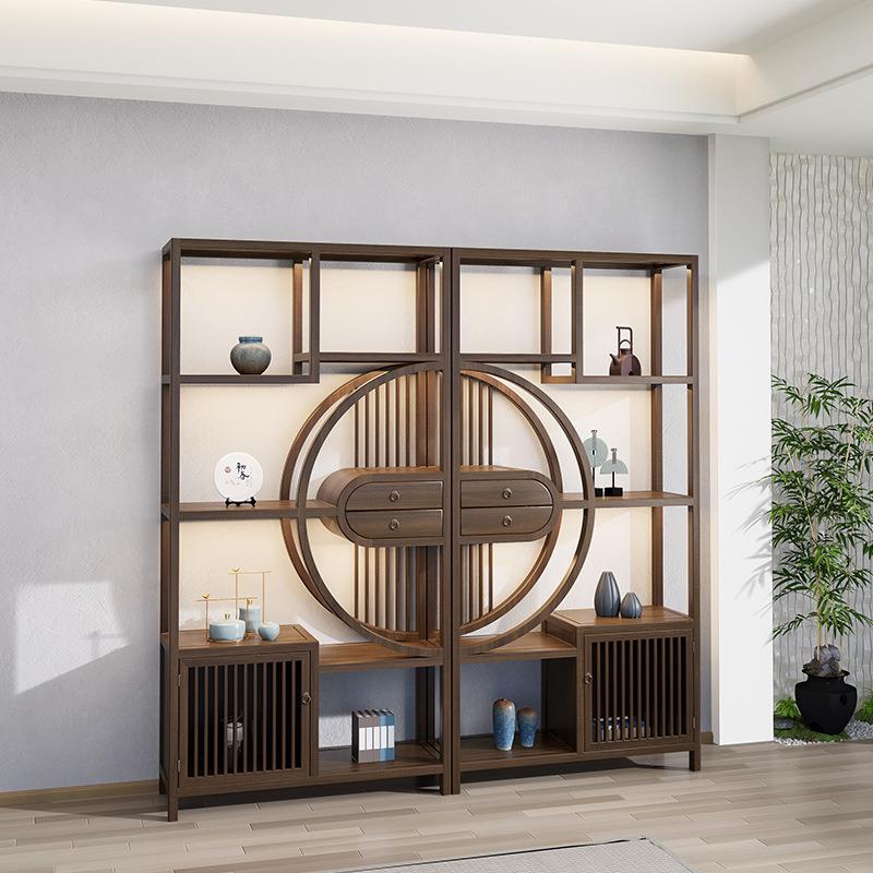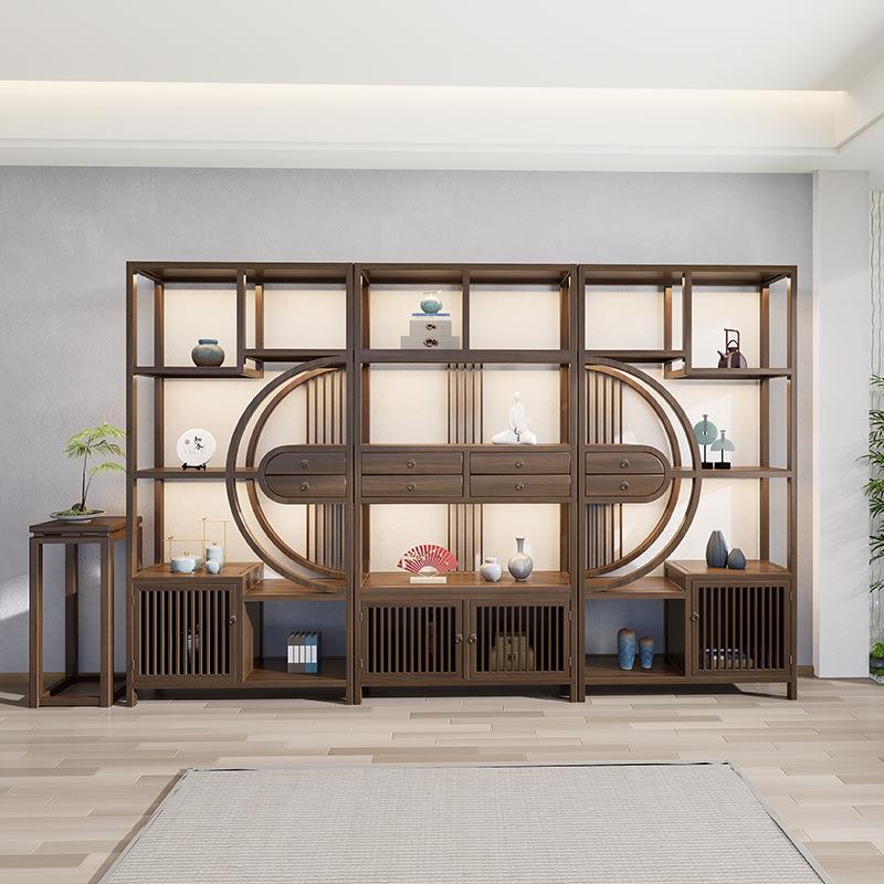 木质博古架茶具茶室圆形餐厅置物架实木中式卧室陈列道具茶叶柜子