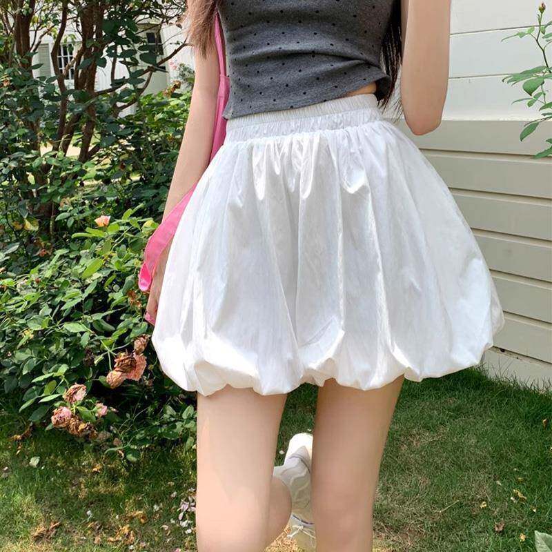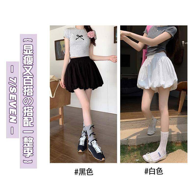 白色花苞短裙裤女夏2025新款a字小个子蓬蓬半身裙防走光外穿短裤