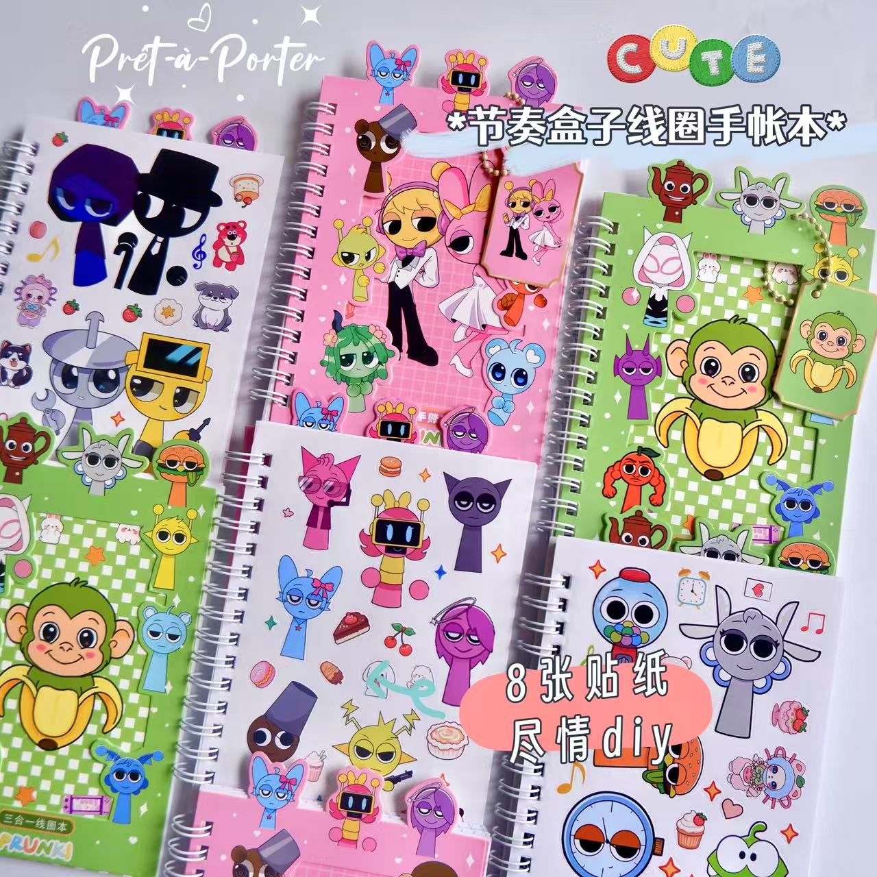 节奏盒子创意卡通贴纸手账本素材可爱风格解压线圈本贴纸笔记本