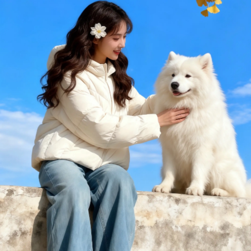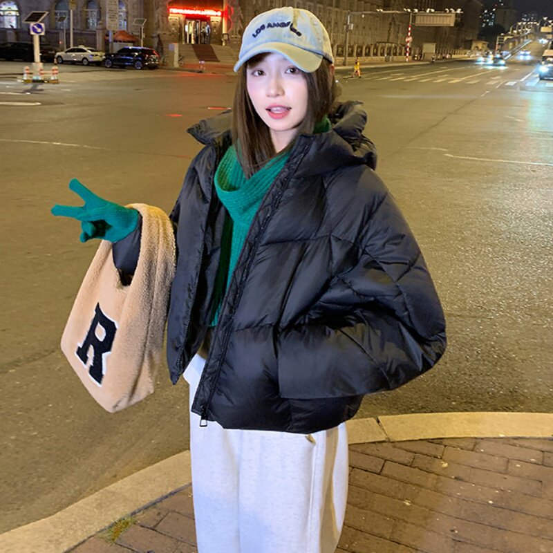 米白色短款连帽棉服女2025年冬季新款高级感面包服加厚保暖棉袄潮