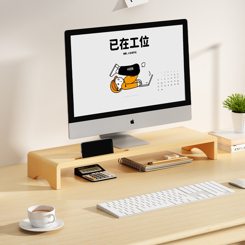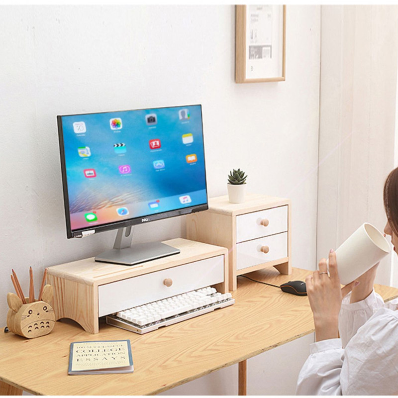 实木显示器增高架台式电脑增高台桌面办公桌置物架工位带抽屉屏幕