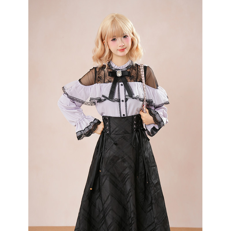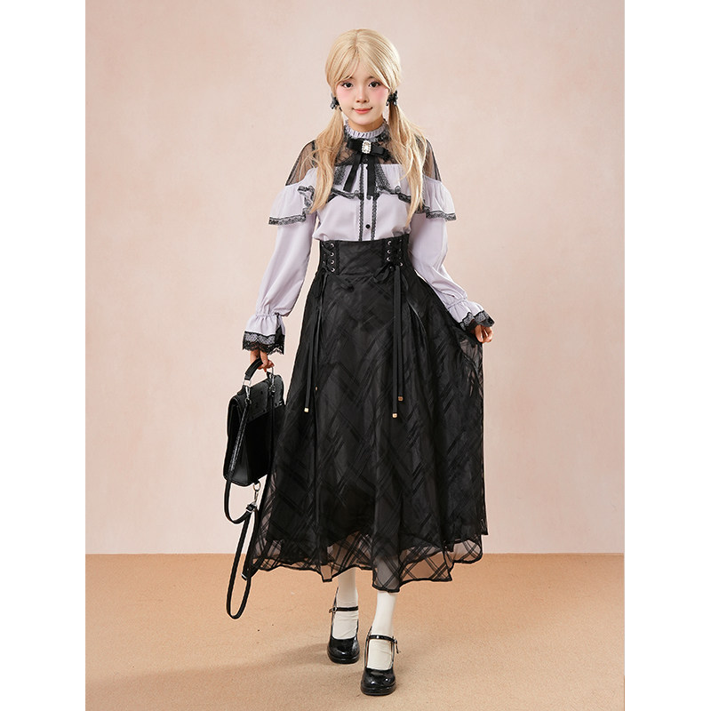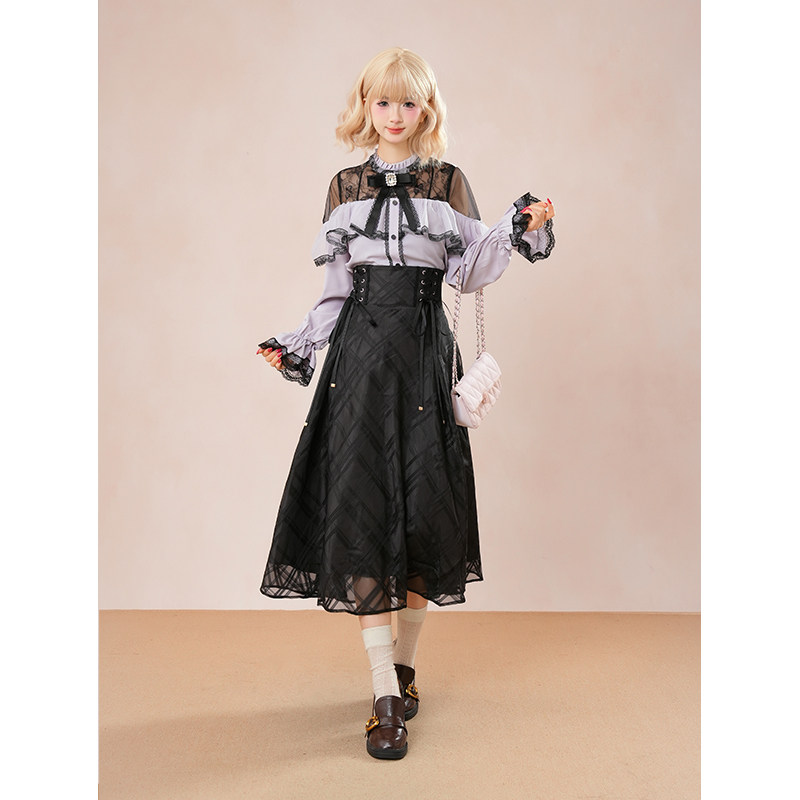 清楚系少女穿搭套装 日系甜美蝴蝶结上衣+半裙两件套2025秋小个子