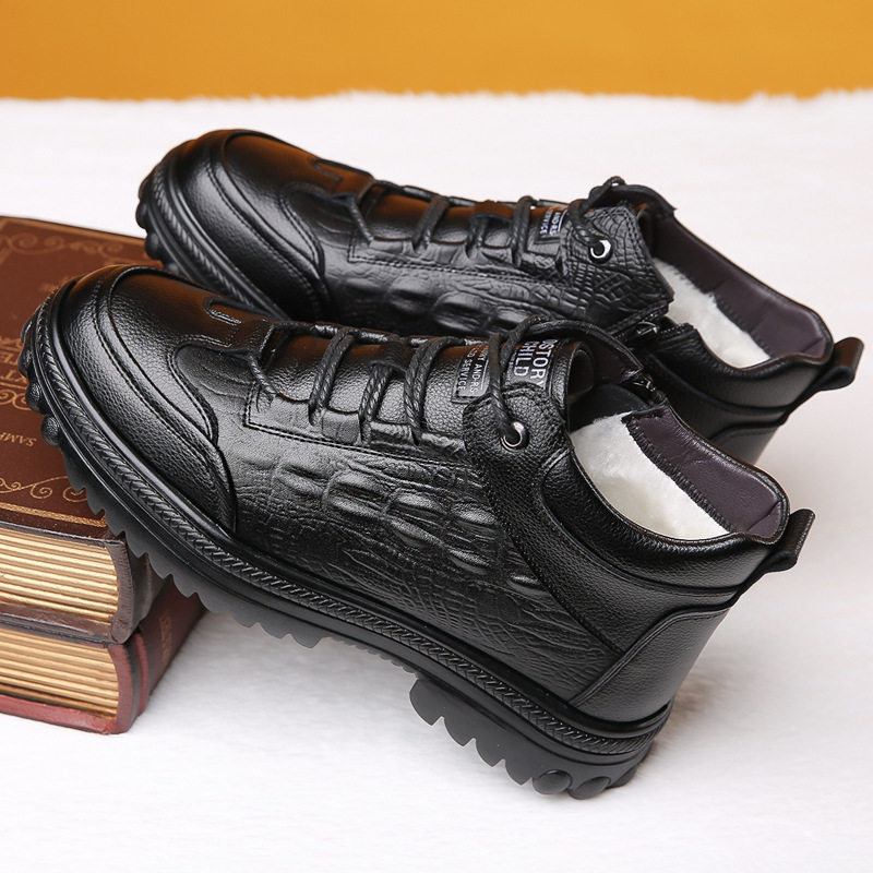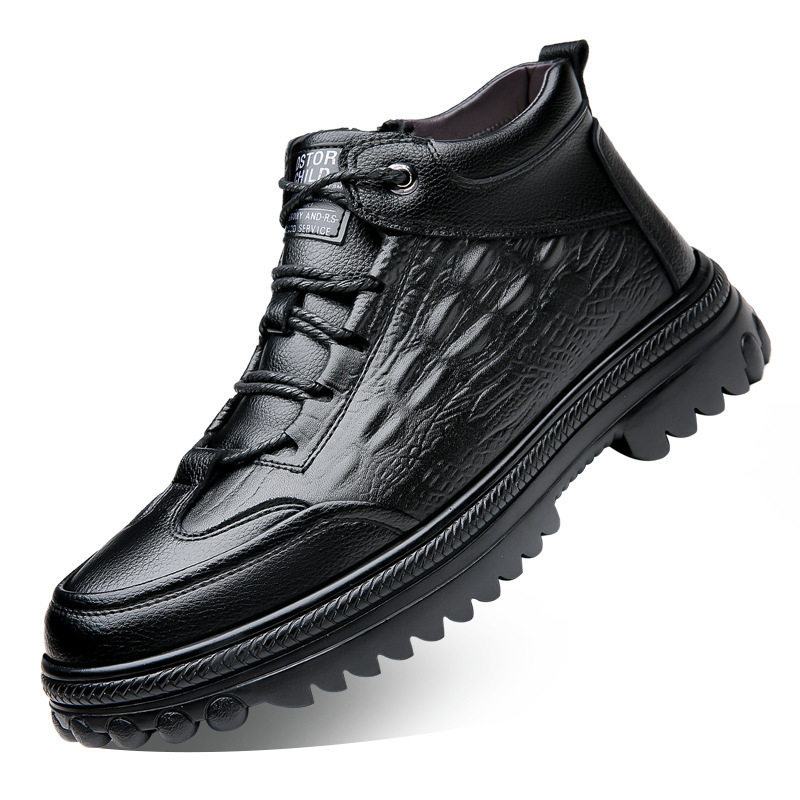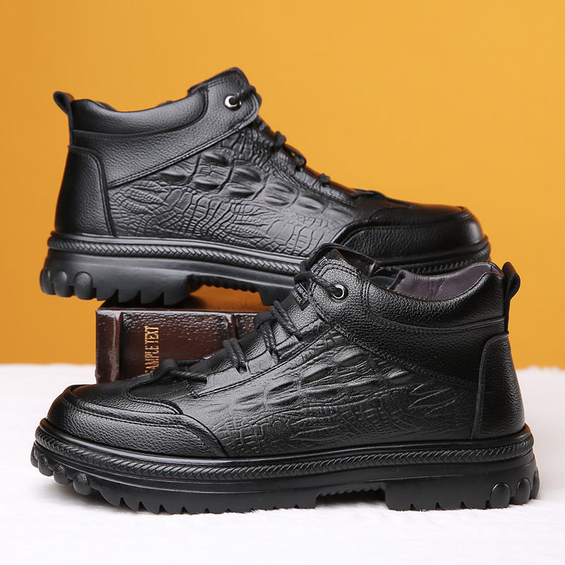 高端男士2025冬季新款鳄鱼纹棉鞋加绒加厚保暖雪地靴高帮防滑皮靴