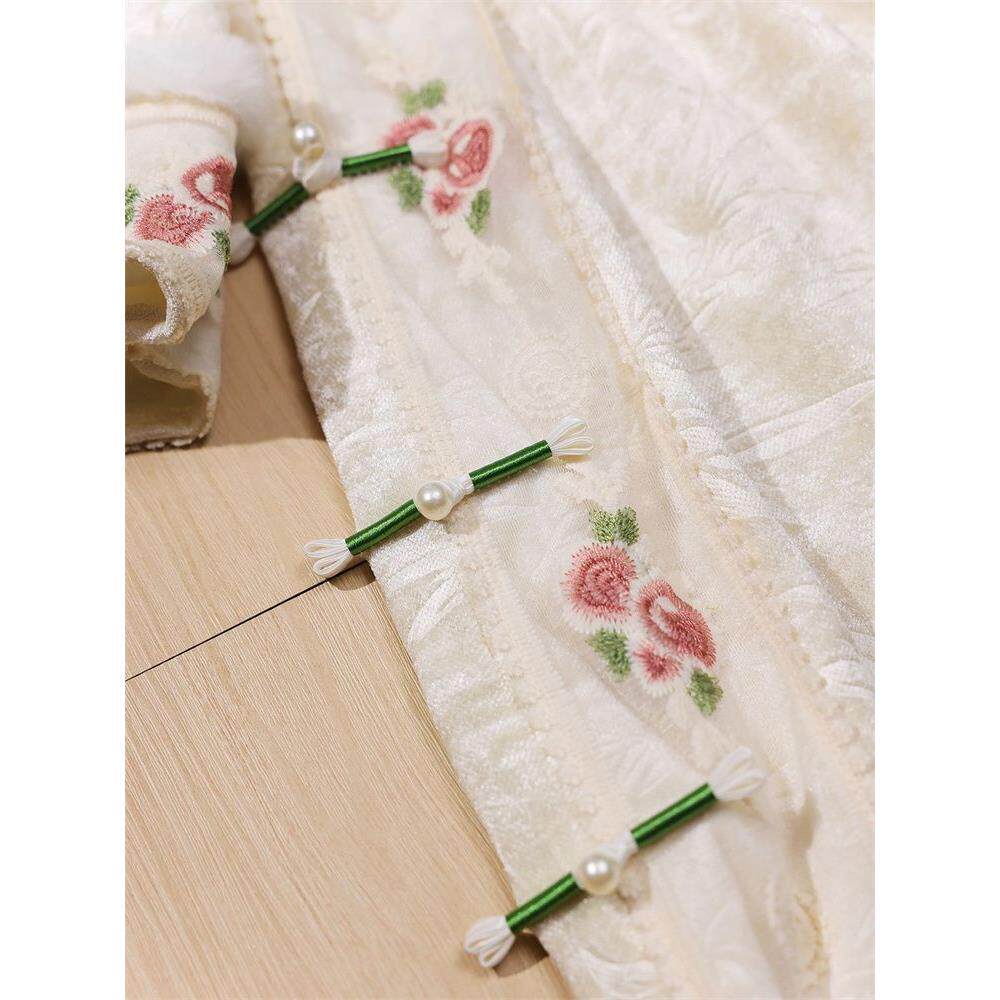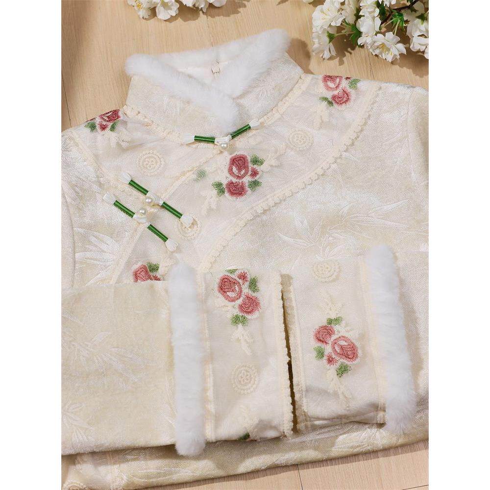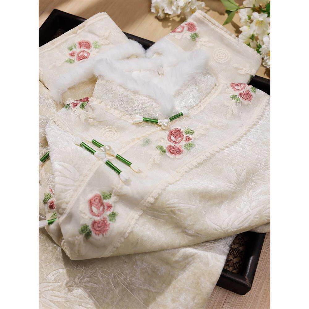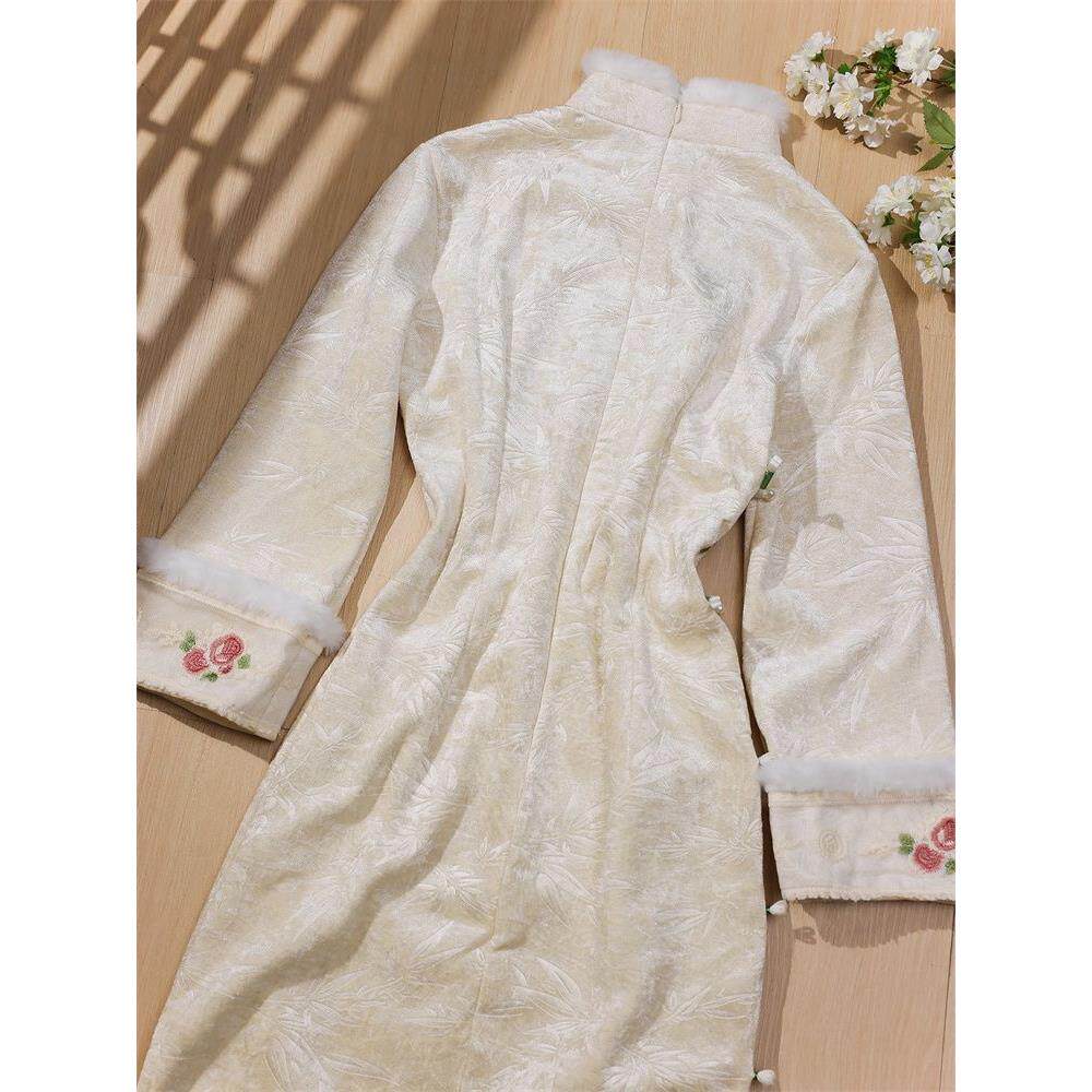 2025米色毛绒新款复古风改良加绒旗袍中式保暖日常可穿气质连衣裙