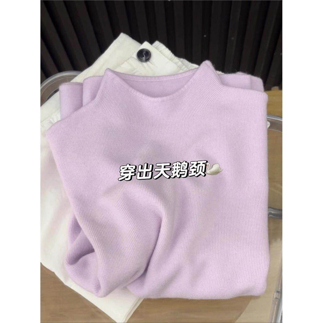 高端小资覆古南瓜橘打底衫女内搭秋冬半高领软糯毛衣长袖针织上衣