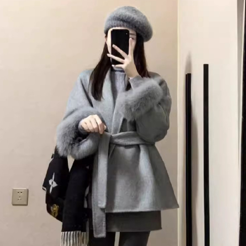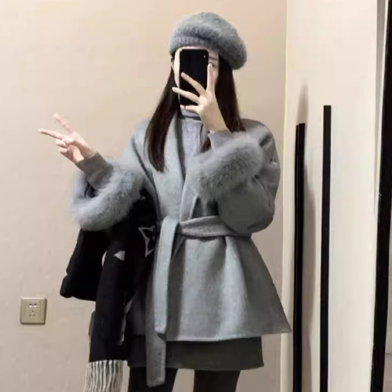 韩系高级感超好看毛毛呢子大衣小个子短款收腰毛呢外套女秋冬新款