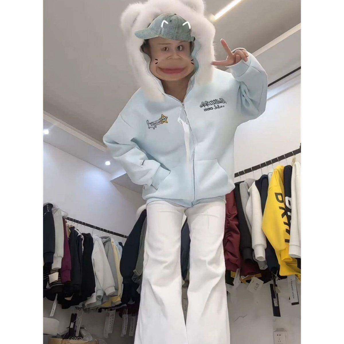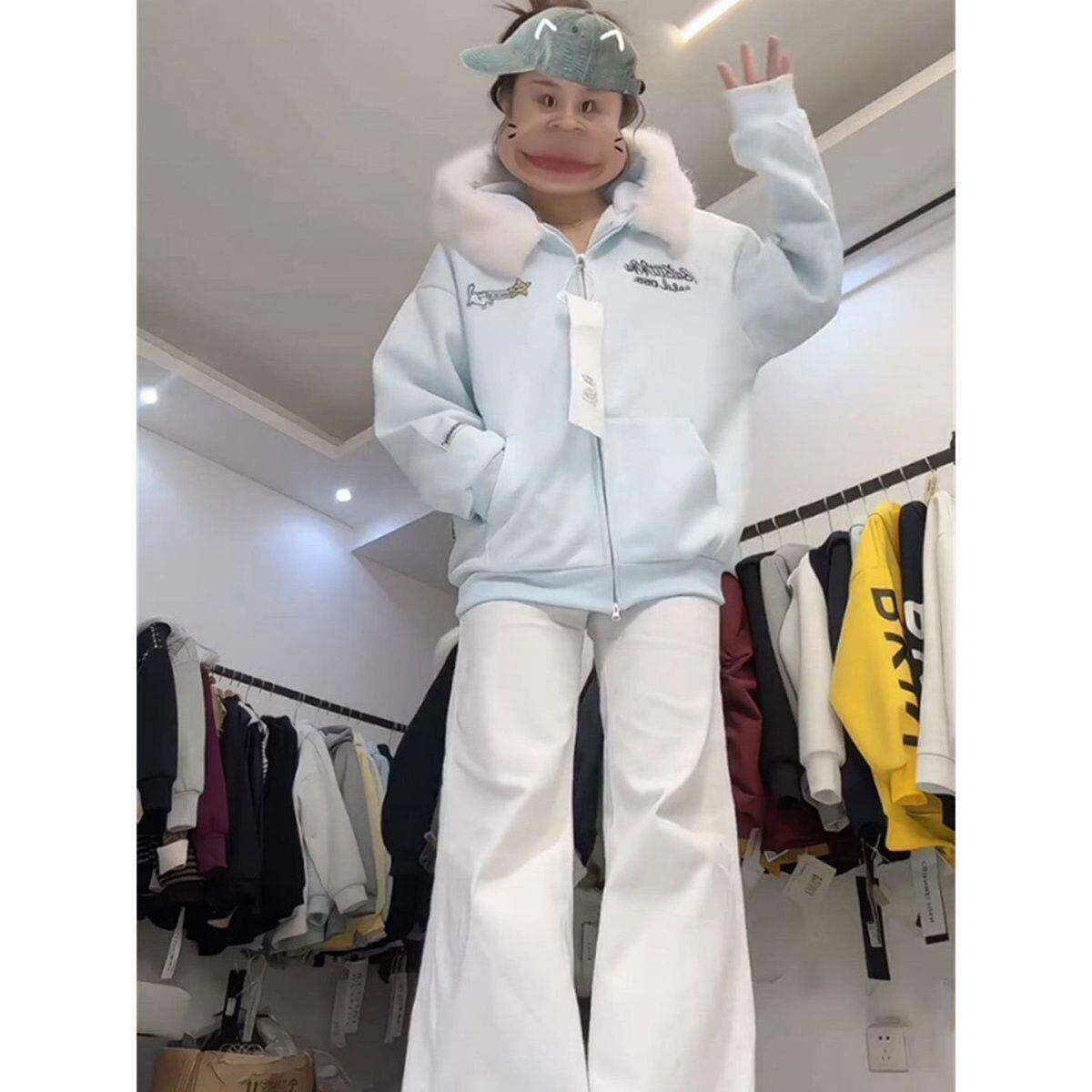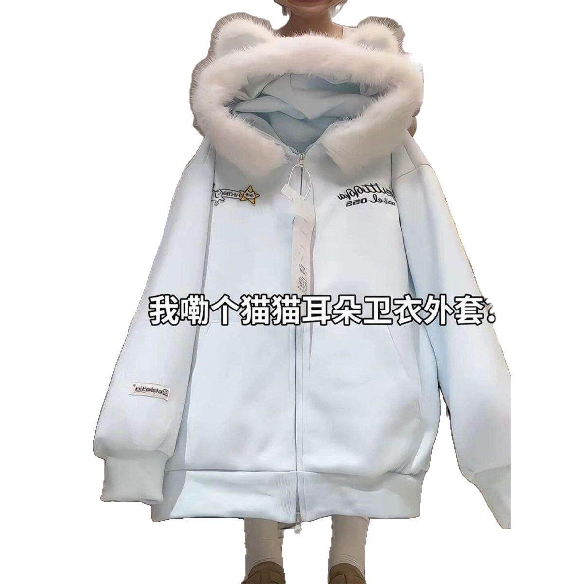 可爱猫耳朵毛领加绒加厚连帽长袖卫衣女秋冬趣味百搭休闲外套上衣
