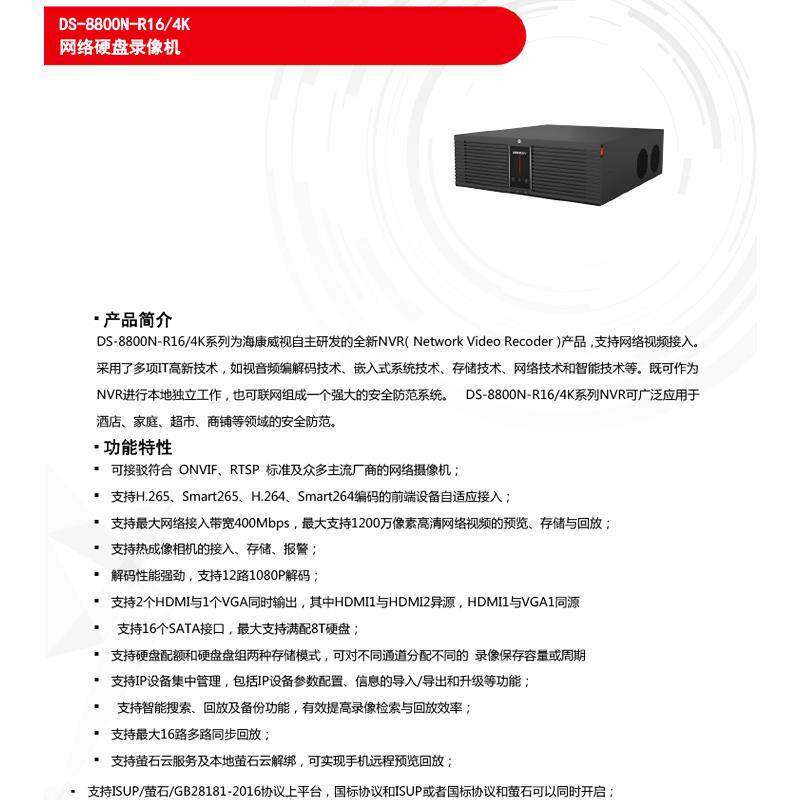 DS-8864N-R16/4K海康威视64路高性能16盘位硬盘录像机监控主机