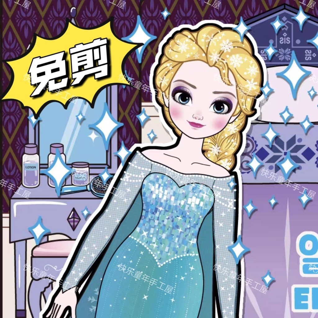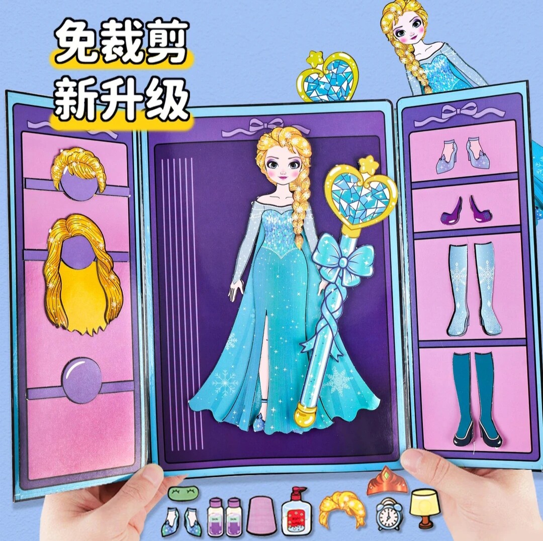 免裁剪冰雪奇缘艾莎公主换装纸娃娃手工DIY自制趣味玩具安静书