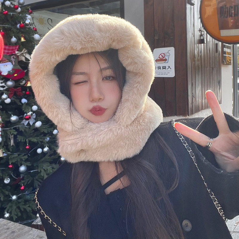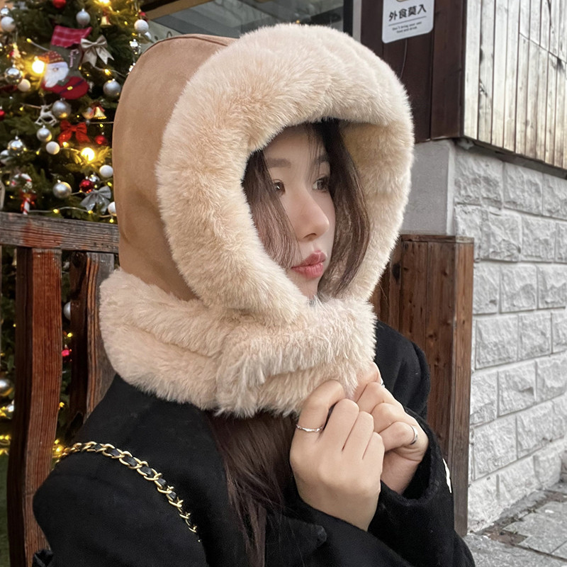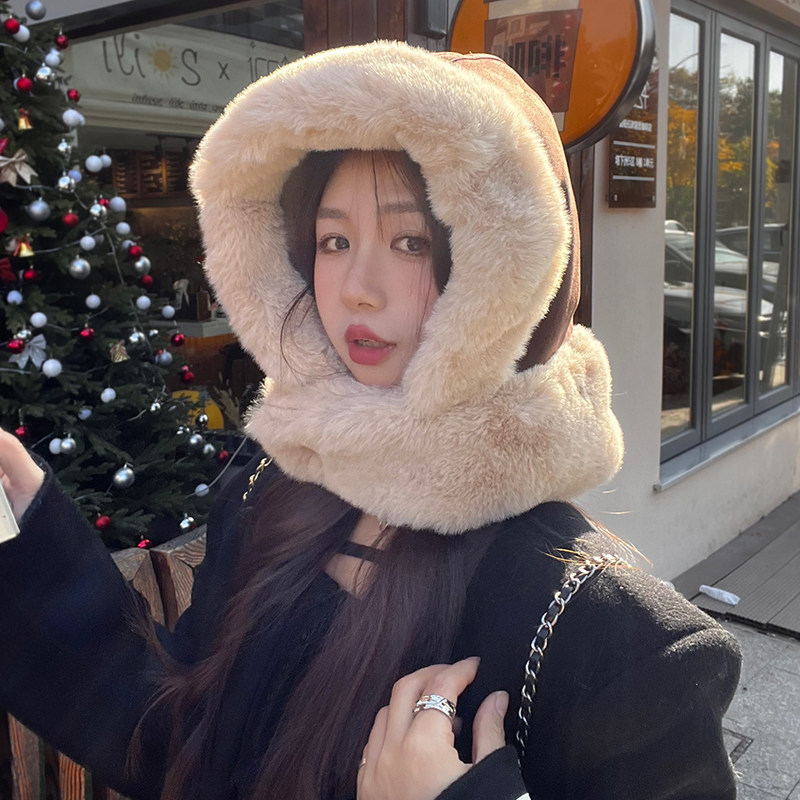 麂皮绒毛绒巴拉克拉法帽冬季护颈加绒骑车雷锋帽女保暖护耳套头帽