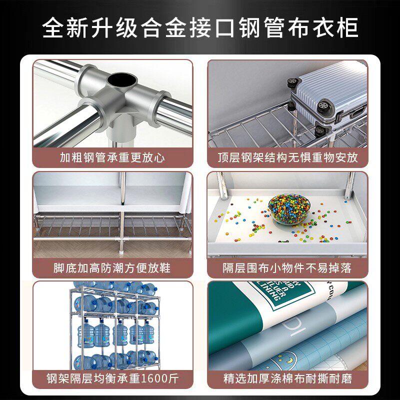 衣柜家用卧室出租房用加固加厚全钢架结实组装简易布衣柜收纳衣橱