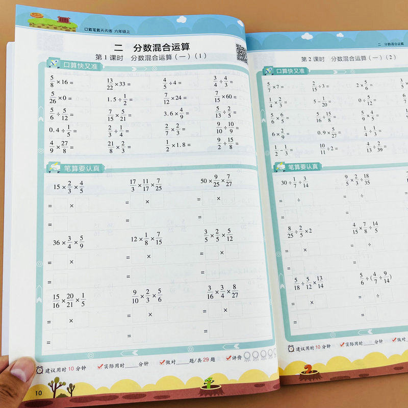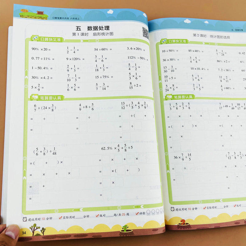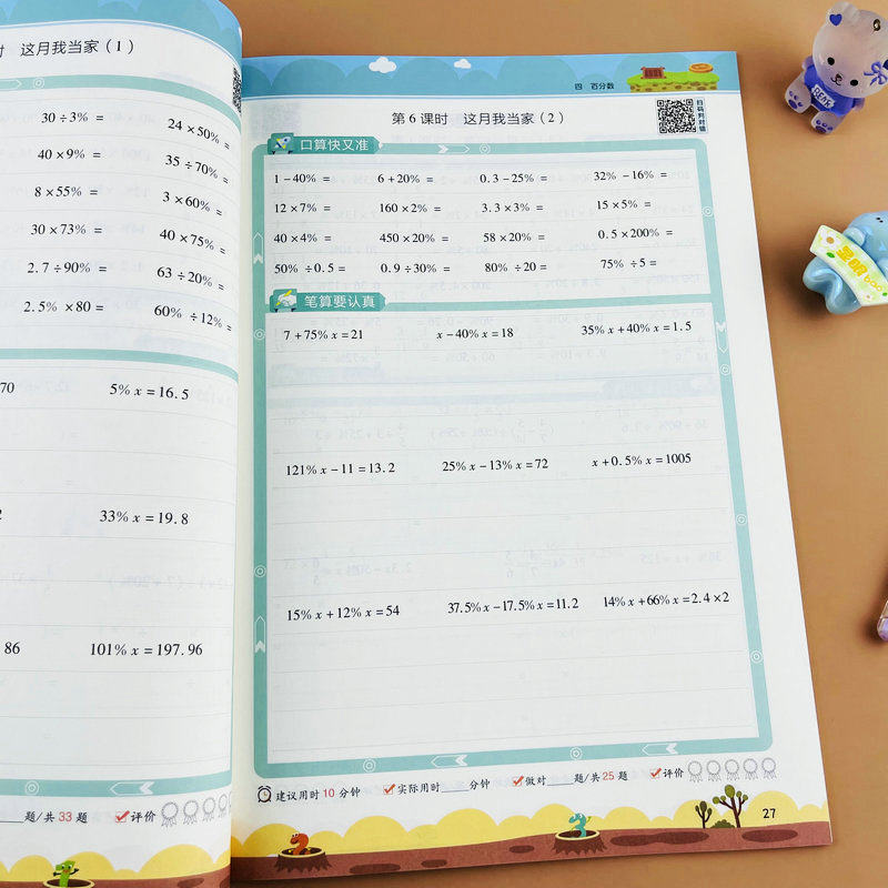 北师大版六年级上册数学计算题强化训练口算笔算竖式脱式计算天天练6年级上学期BS版课本同步练习册圆分数混合运算百分数比的认识