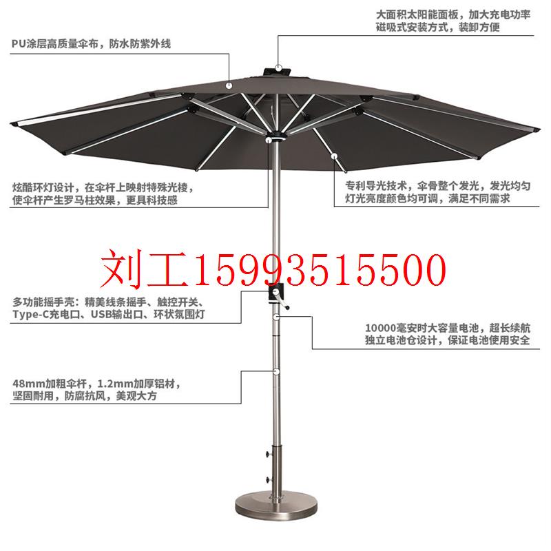 太阳能中柱伞USB充电直杆伞四种LED灯光模式立柱灯条伞户外庭院伞