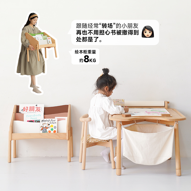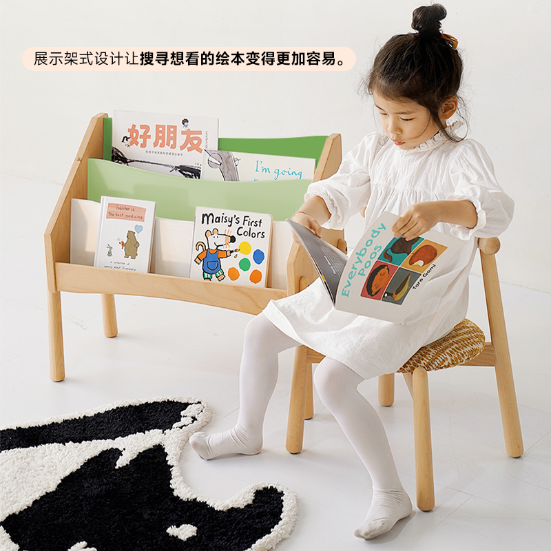 异果酱实木儿童书架落地杂志架置物架绘本架绘本收纳架宝宝小书柜