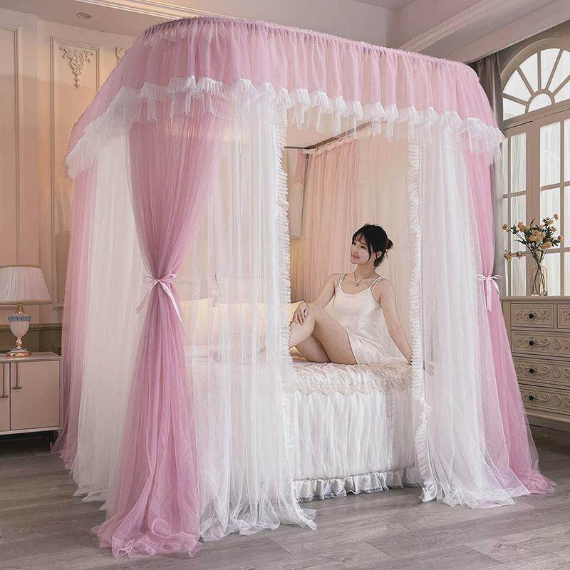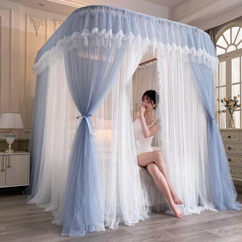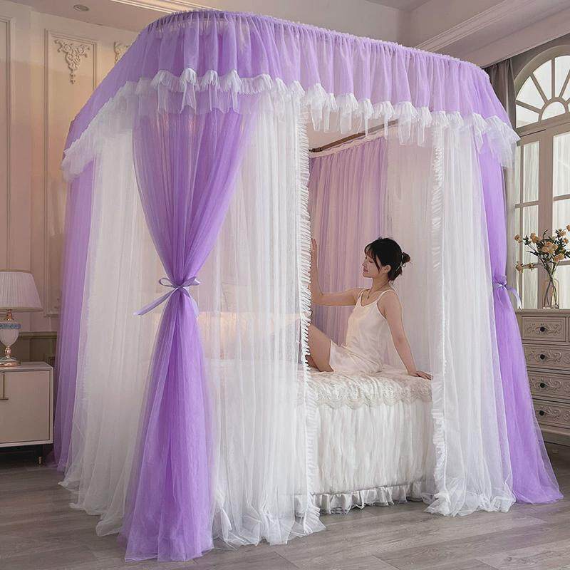 新款u型导轨蚊帐轨道式加粗加高帐加密支架纱浪漫公主仙女风蚊帐