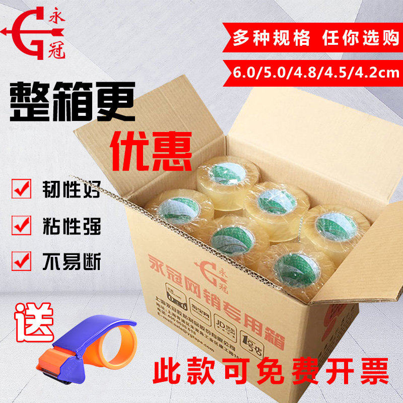 永冠透明胶带大卷高粘度强力快递打包封口胶纸宽整箱批发封箱胶布
