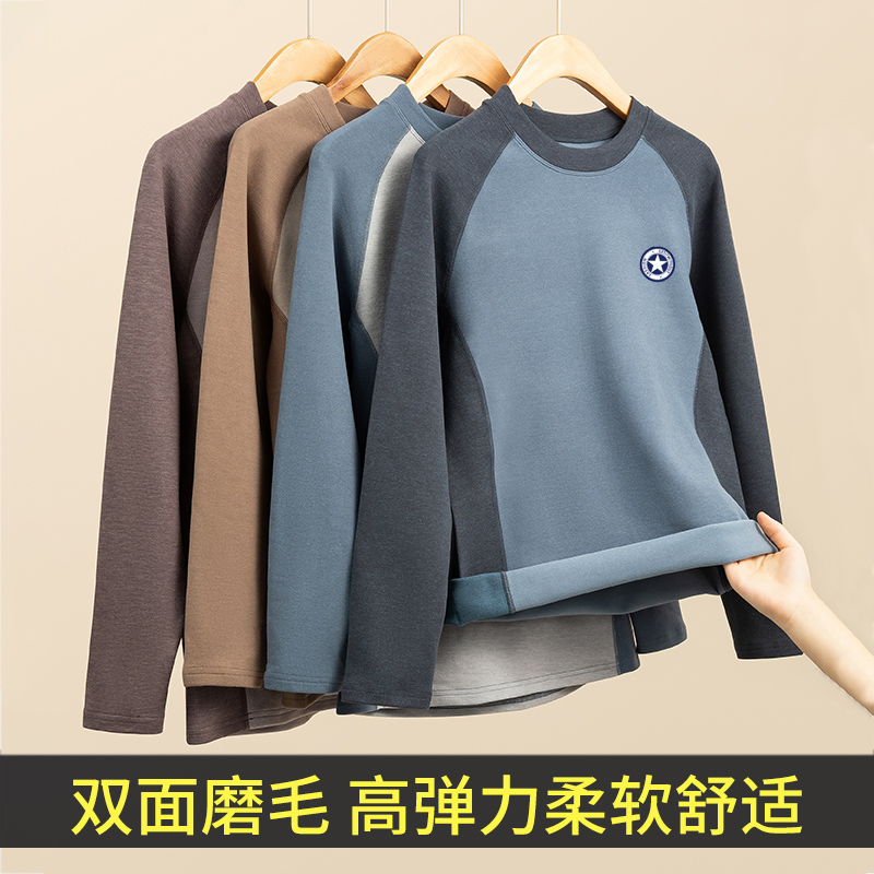青少年德绒发热保暖内衣初中高中学生秋衣秋裤套装男士棉毛衫冬季
