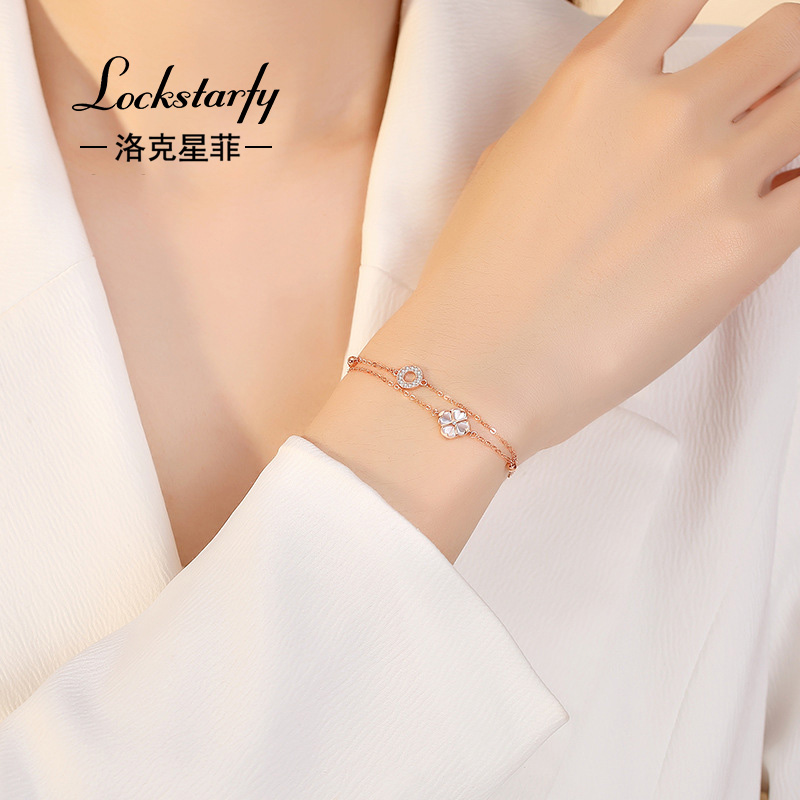 首页> 配饰> LOCKSTARFY轻奢品牌18k金双层四叶草手链女情人节送女友老婆礼物