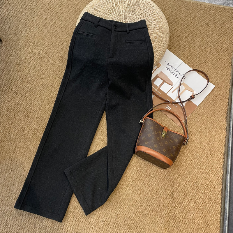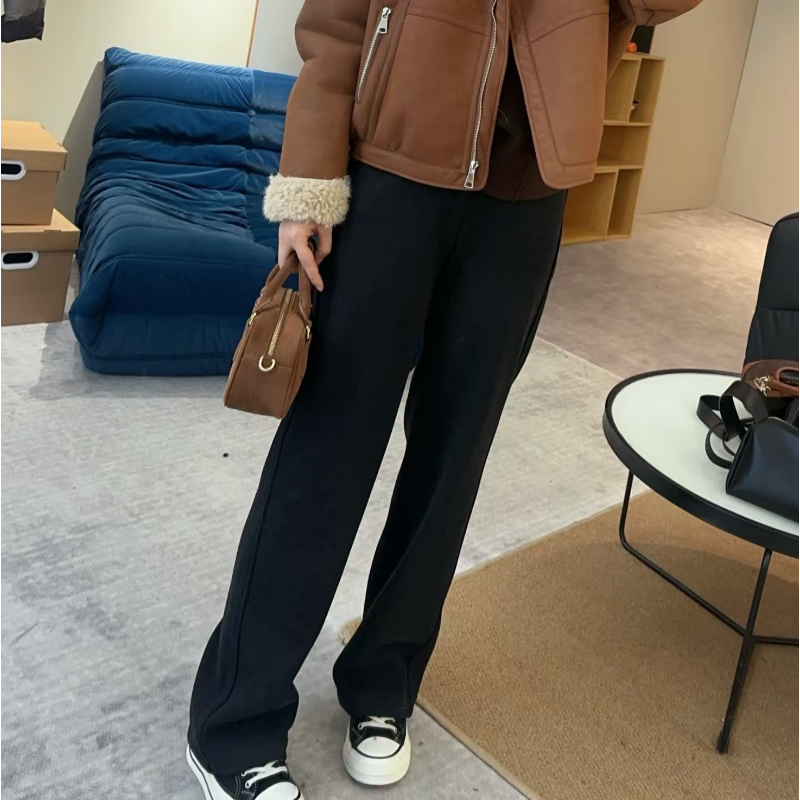 小个子冬季新款显瘦垂感松紧腰百搭窄版加厚气质加绒直筒裤F6828