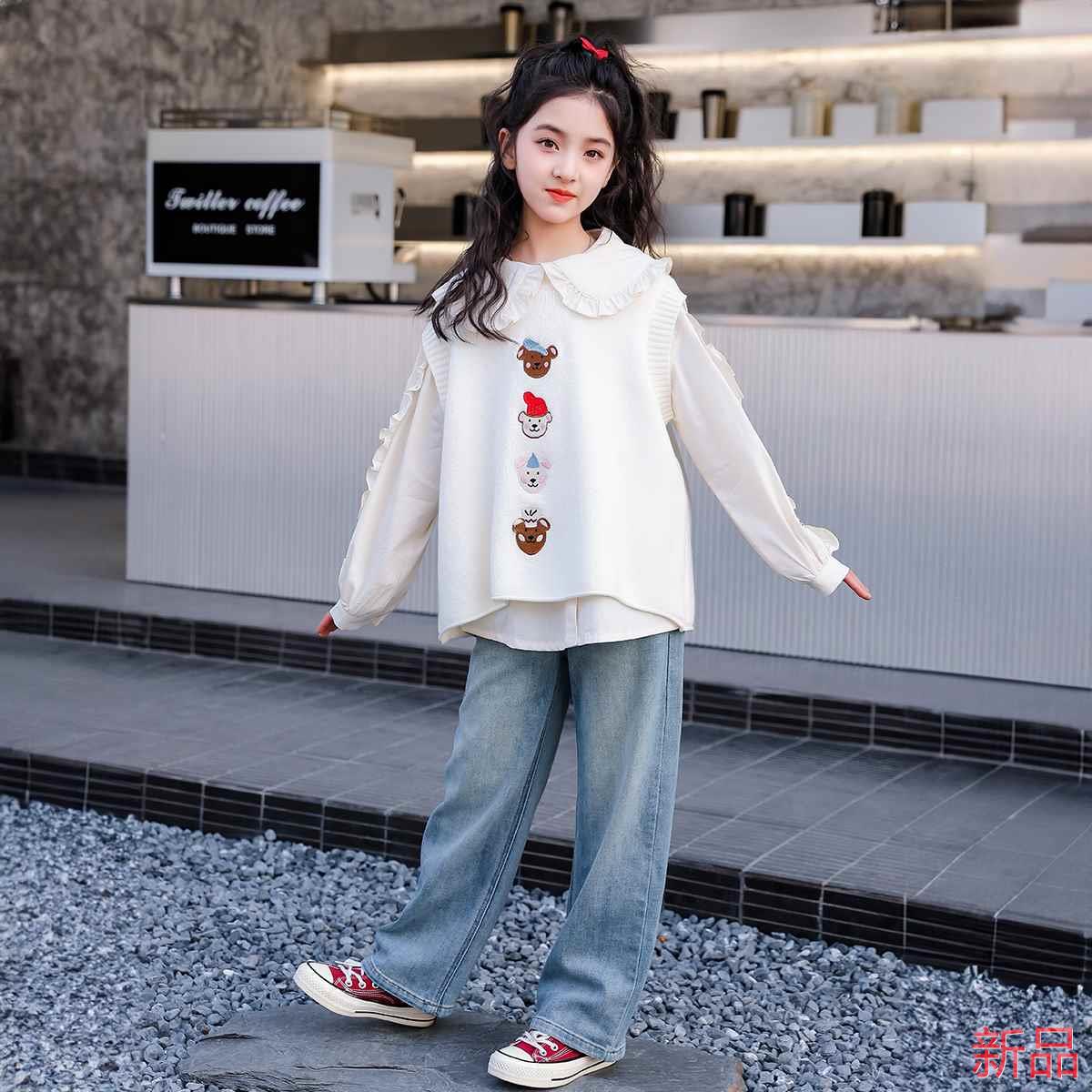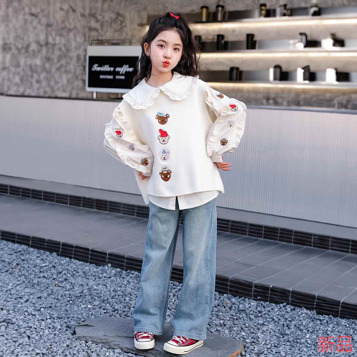 女童套装秋装2025新款儿童春秋衬毛衣衫两件套女大童娃娃领公新品
