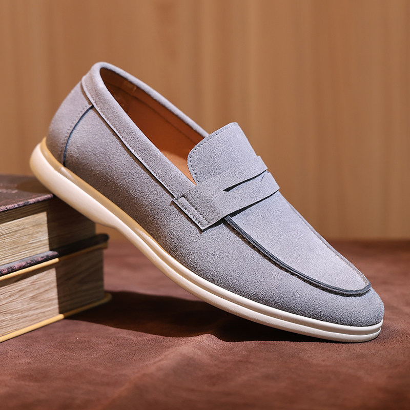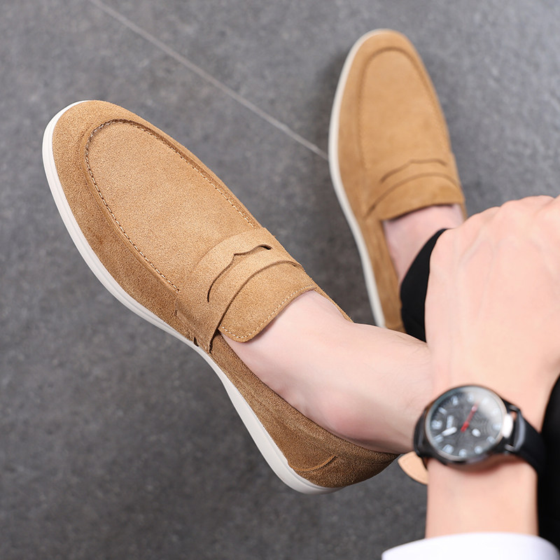 2025夏季新款英伦男士小皮鞋真皮反绒磨砂一脚蹬懒人乐福鞋豆豆鞋