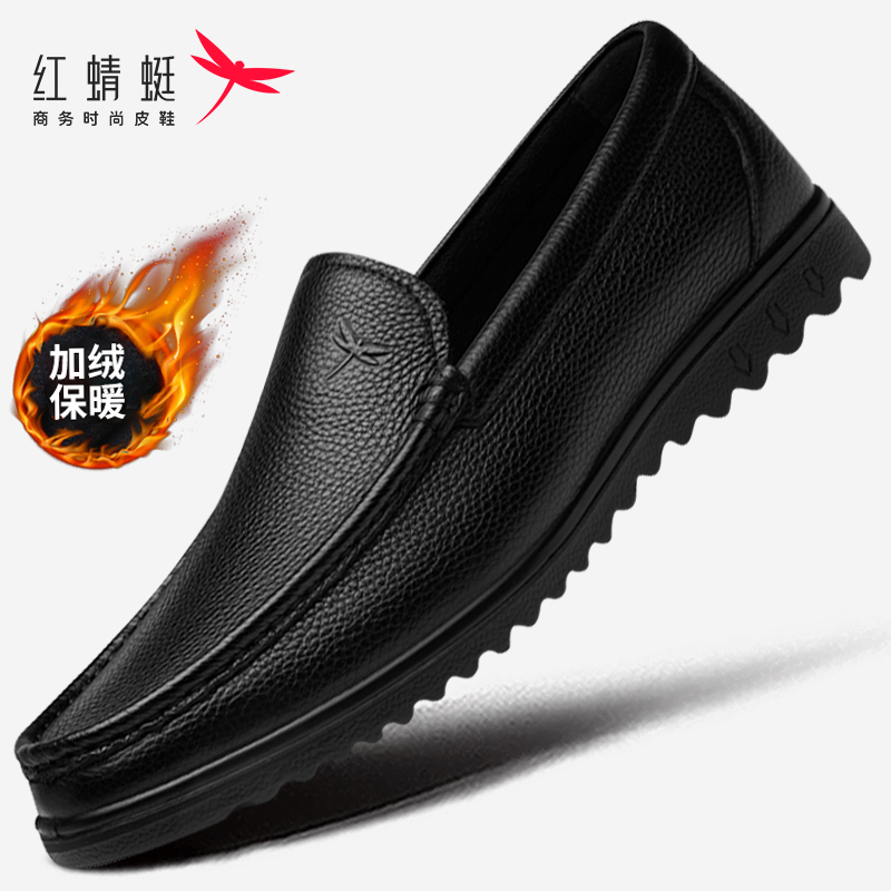 红蜻蜓官方正品男鞋秋季男士休闲一脚蹬皮鞋懒人豆豆鞋男真皮软皮