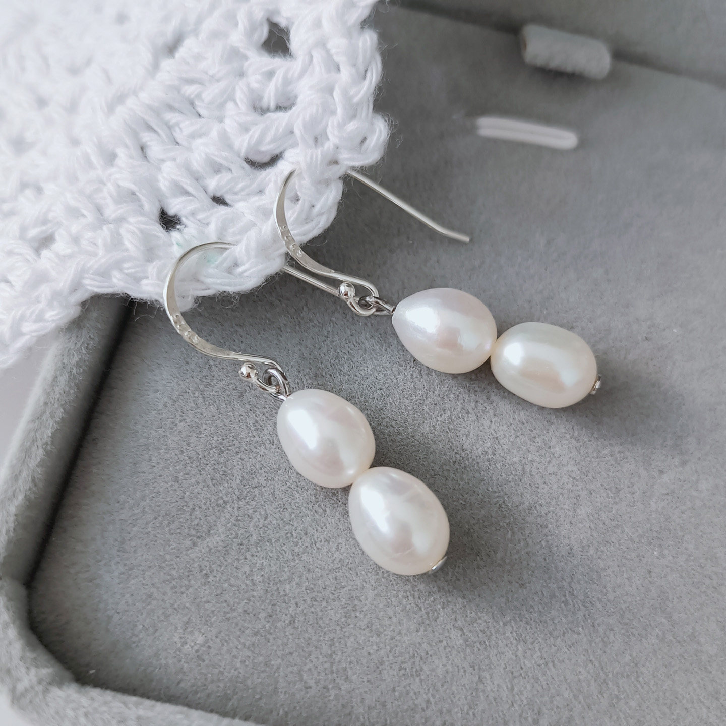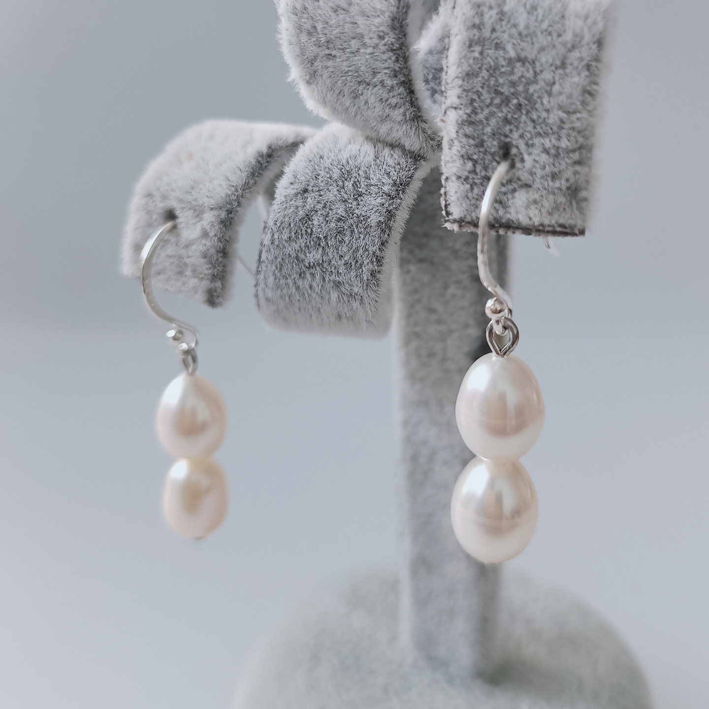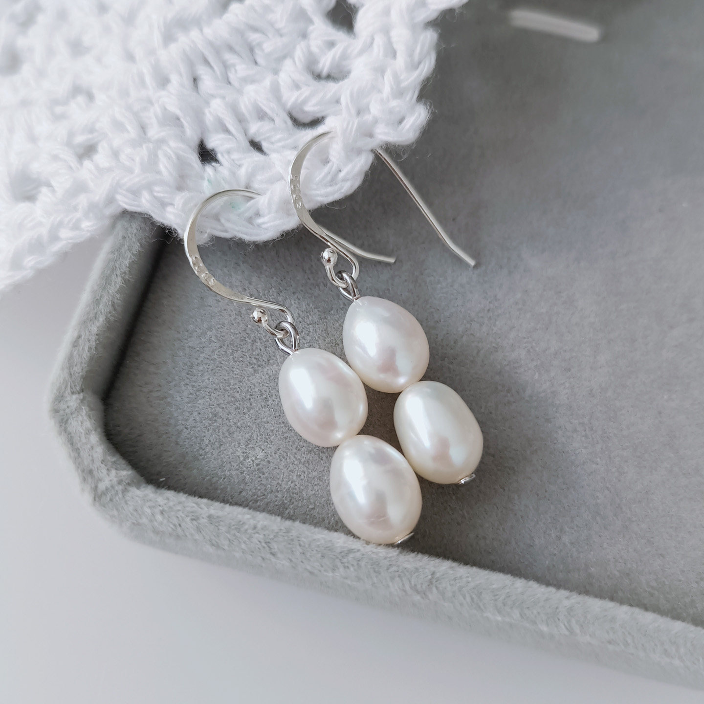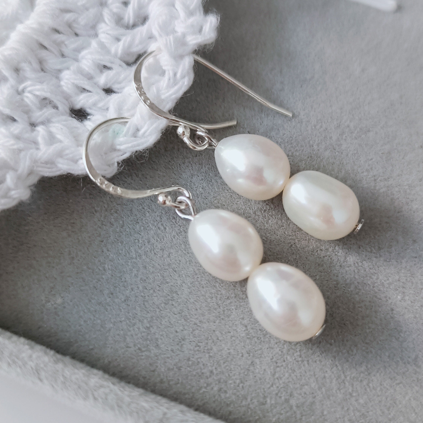 天然水滴米形珍珠耳坠简约气质耳环高级感二颗小珍珠925纯银耳环