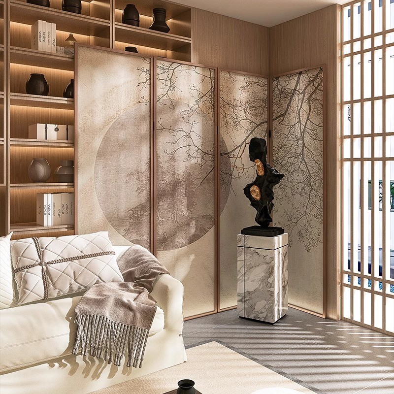 爆款新中式宋代遮挡屏风隔断客厅茶室书房办公室玄关美学装饰背景