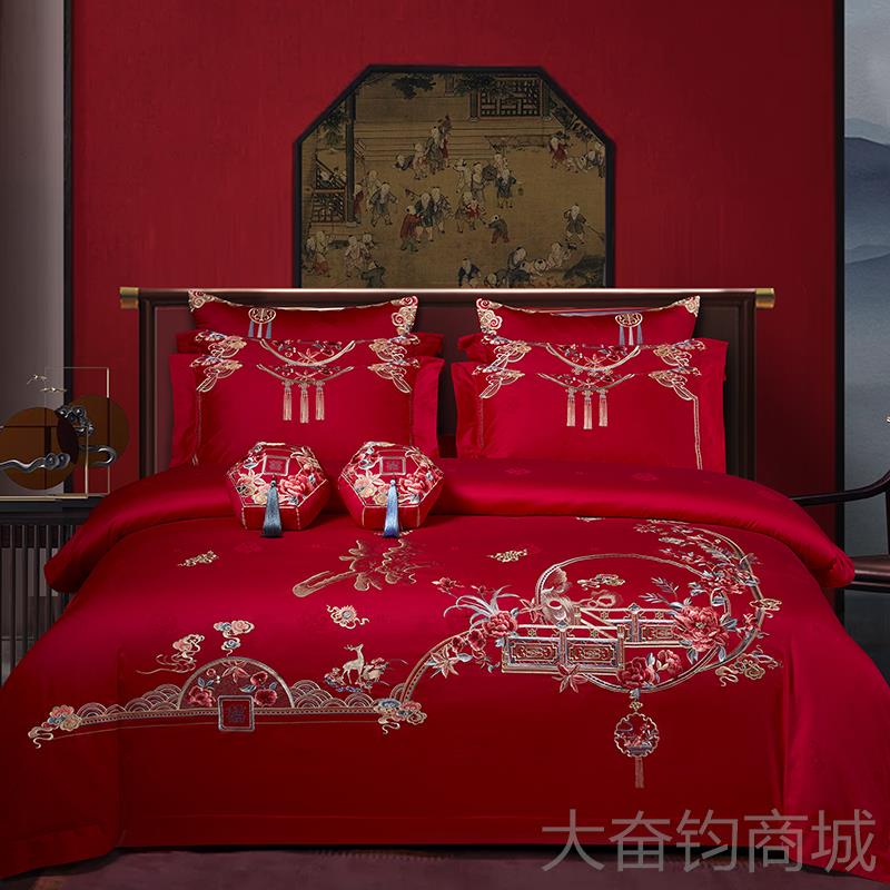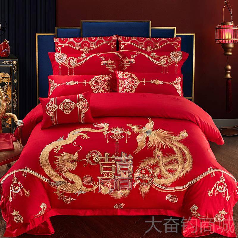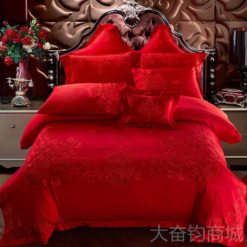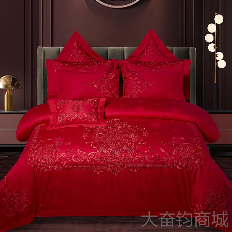 正品140s支全婚品四件结套新婚大红色刺绣床棉上用婚庆六十多件套