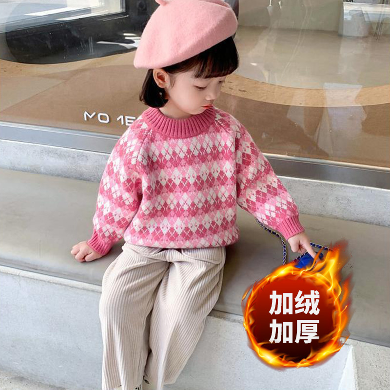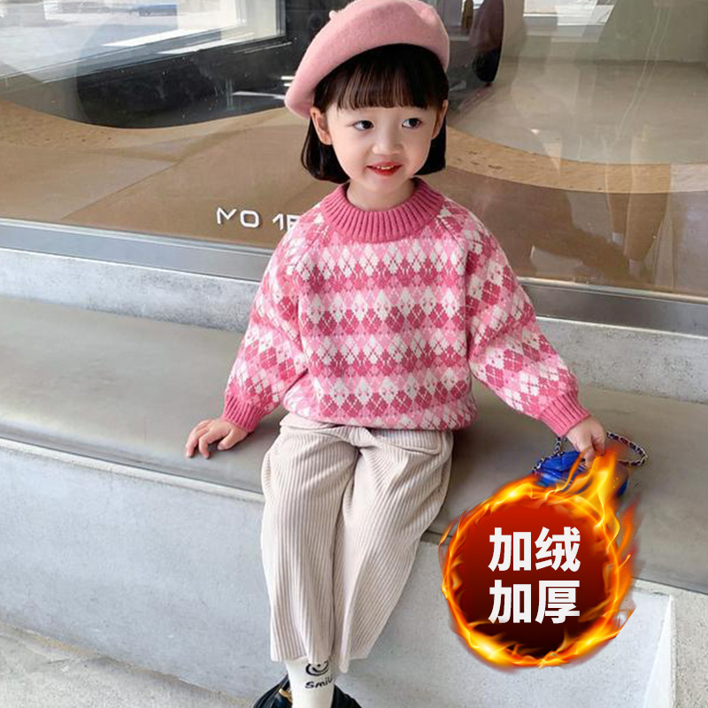 儿童毛衣加绒加厚韩版女童冬季宝宝童装套头洋气时髦打底针织衫