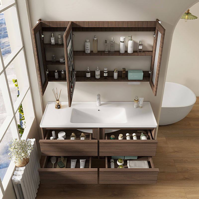 中古风胡桃木陶瓷一体盆浴室柜卫生间骨骼线洗漱台洗手盆洗脸