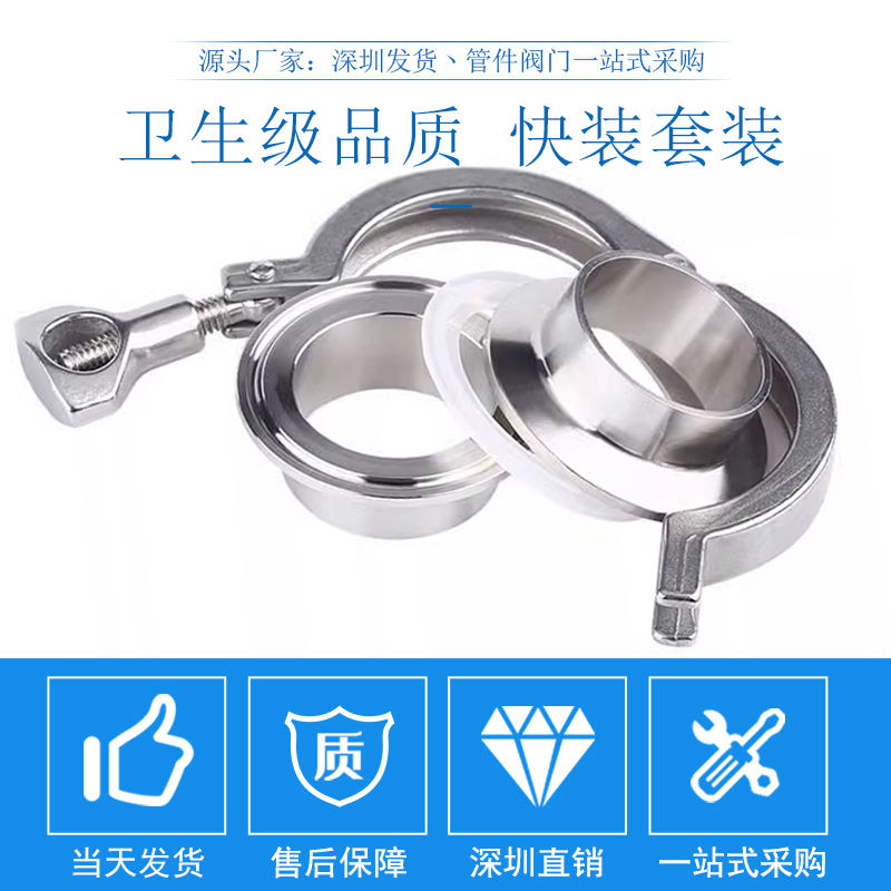 304不锈钢快装卡箍套装快速焊接卡盘接头固定卡扣卫生级卡箍活接