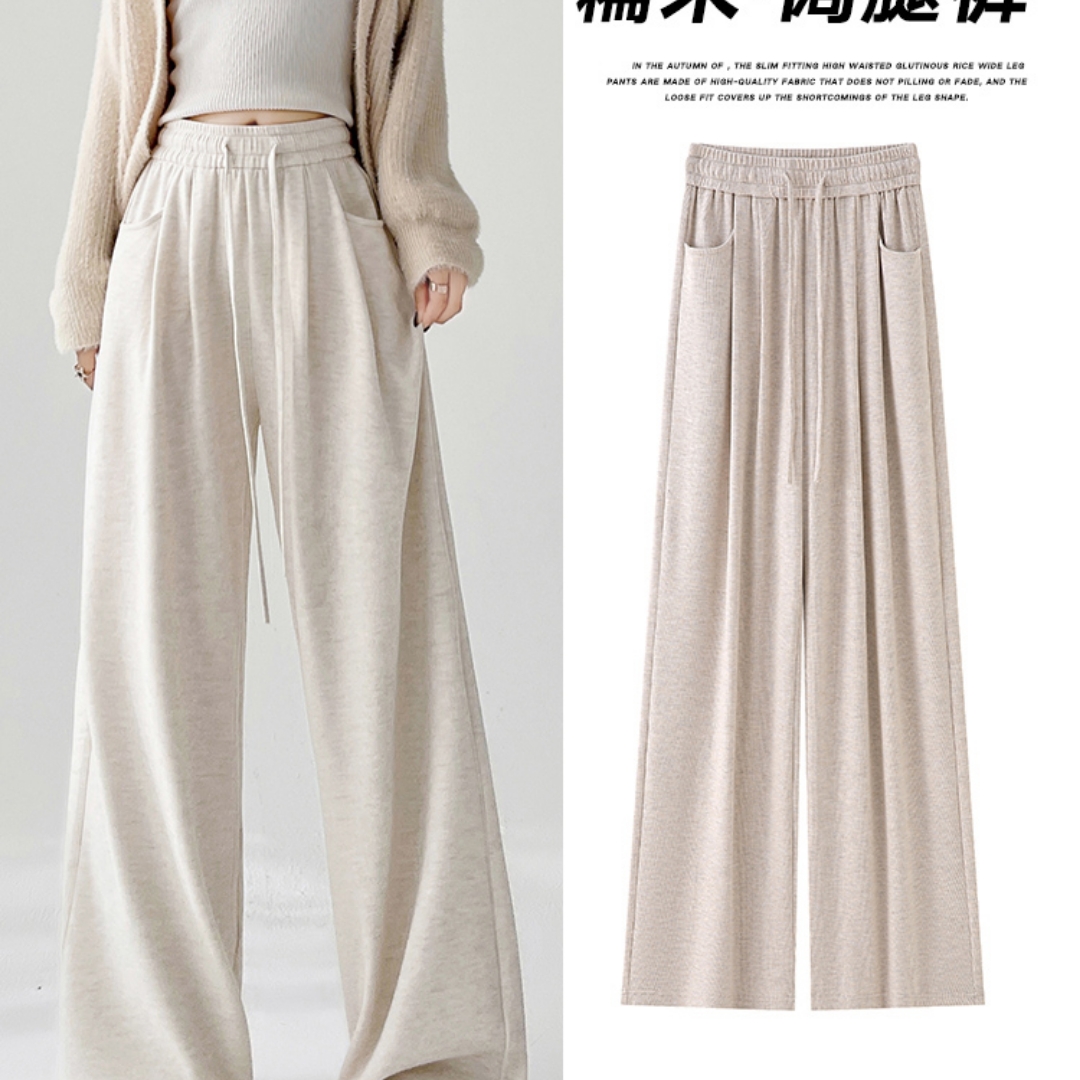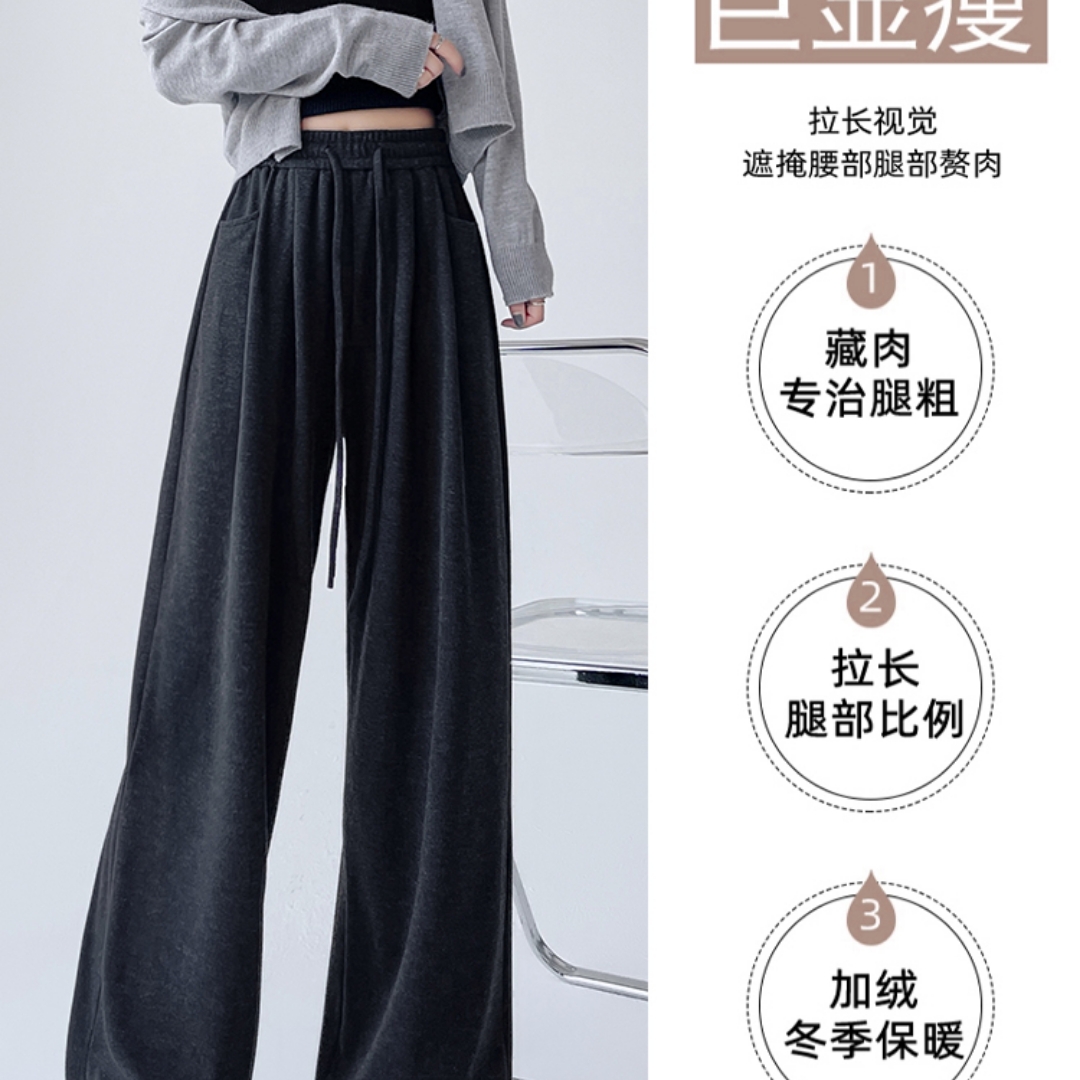 实拍白色糯米裤子女秋冬加绒2024款高级宽松垂感直筒慵懒休闲阔腿