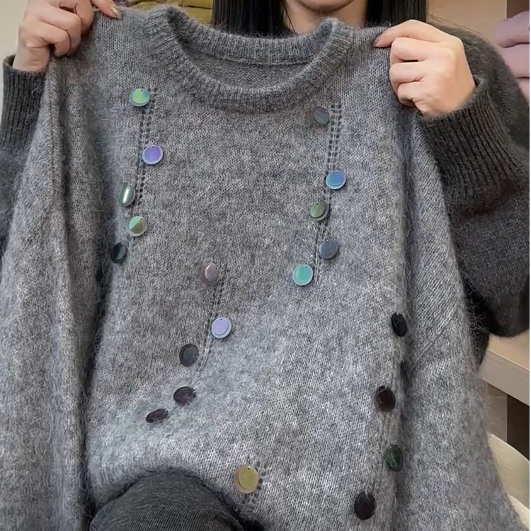胖mm特大码300斤慵懒风重工亮片灰色毛衣女秋冬设计感宽松针织衫
