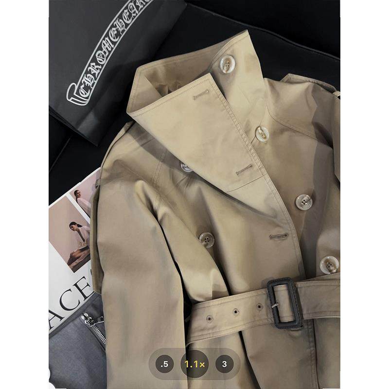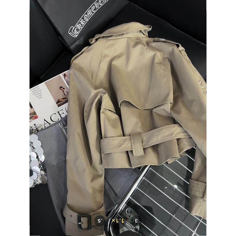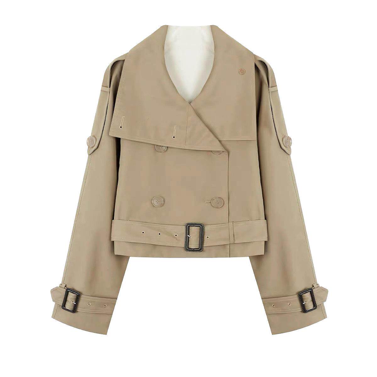 卡其色短款风衣外套女韩系复古酷飒风立领双排扣小个子衬衫上衣秋