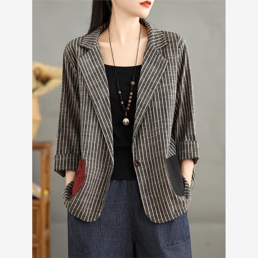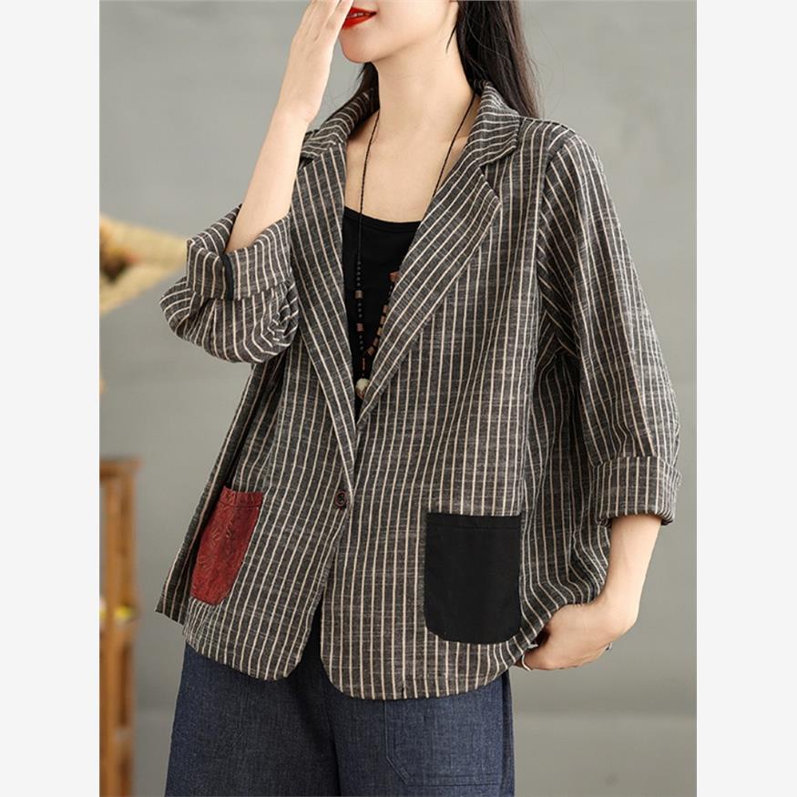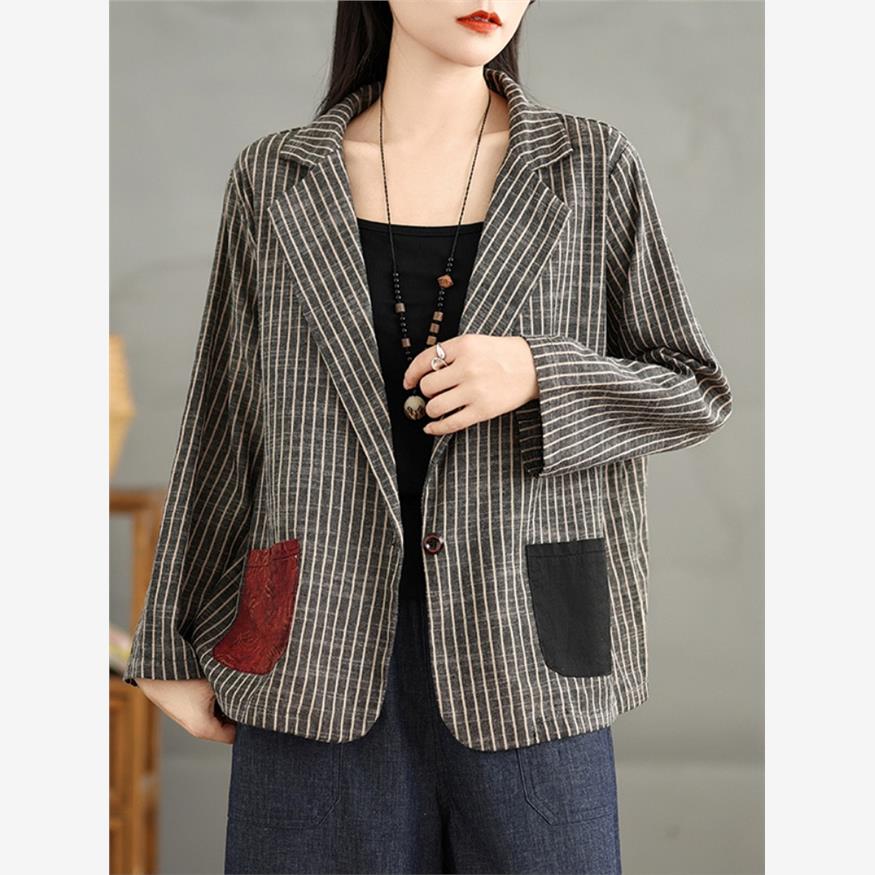 小飞家~秋季新款拼接条纹夹克搭配对比翻盖口袋裤设计,小西装,
