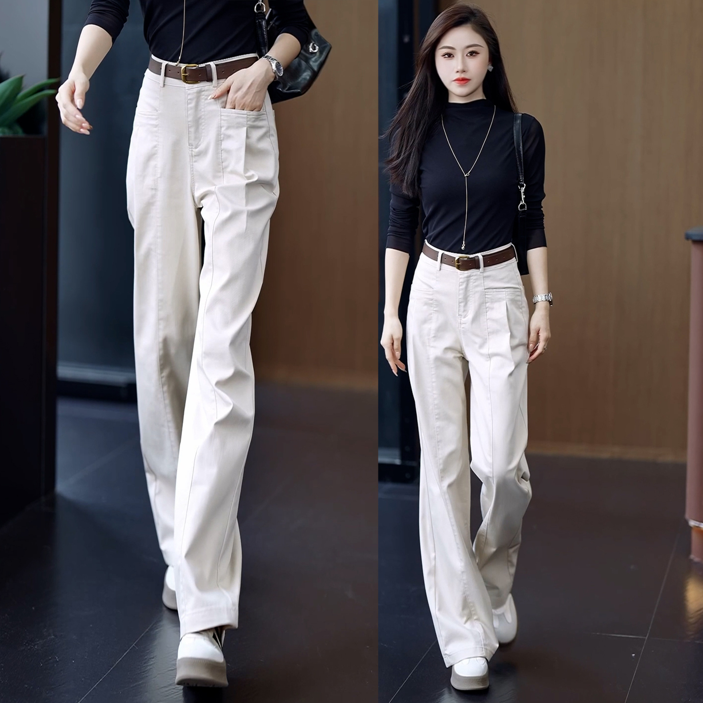 首页> 女装> 藏青色直筒牛仔裤女秋冬2025新爆款显瘦小个子高腰加绒窄版阔腿裤