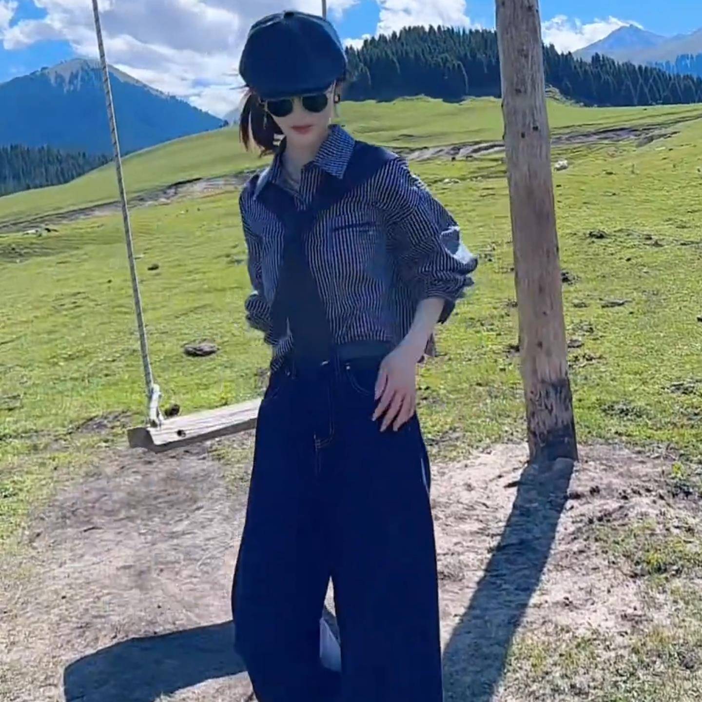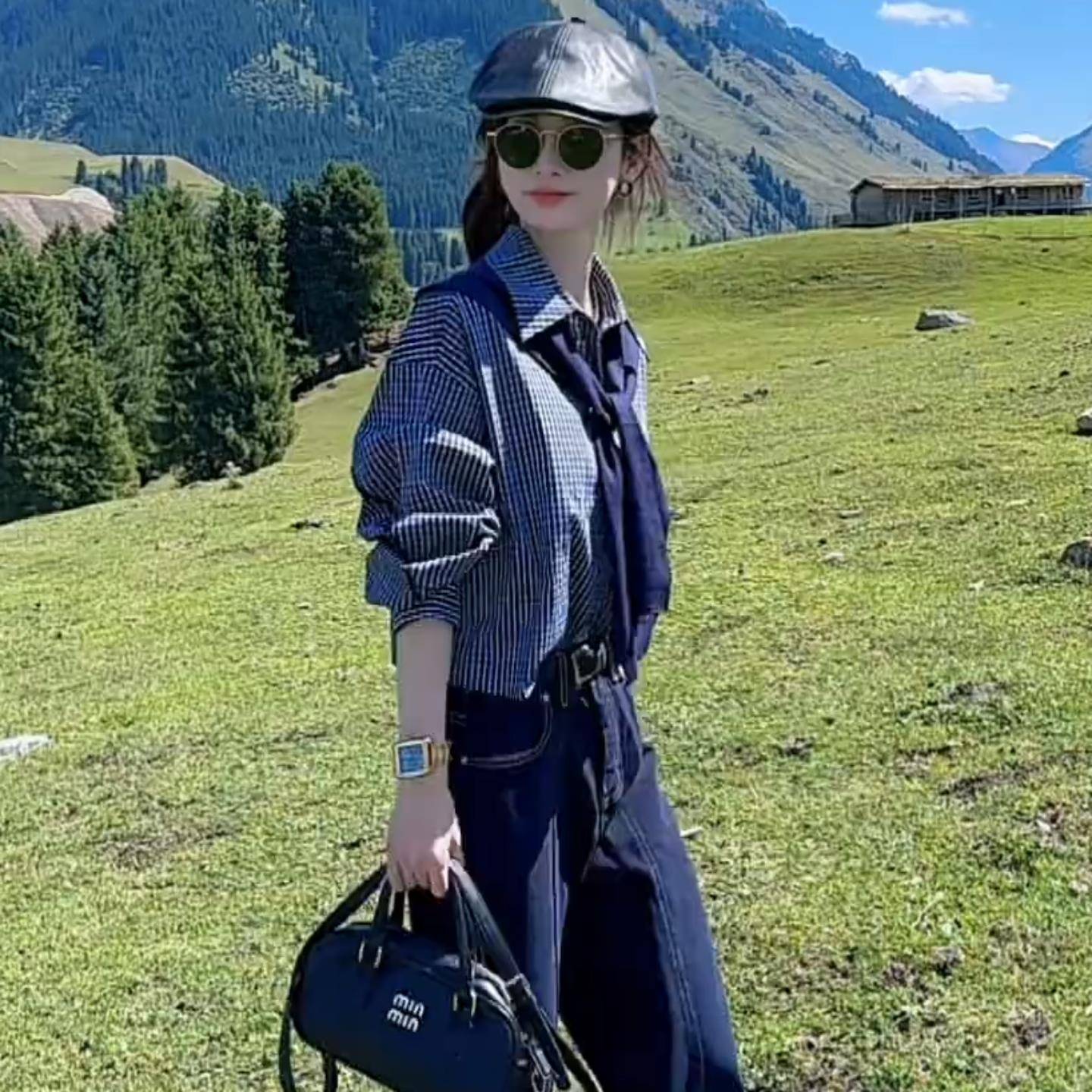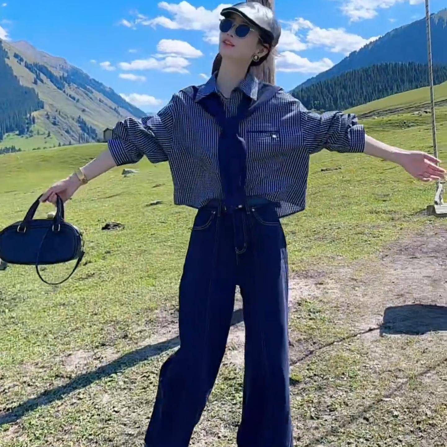 时尚条纹长袖衬衫女早秋新款洋气减龄衬衣百搭宽松遮肚子休闲上衣