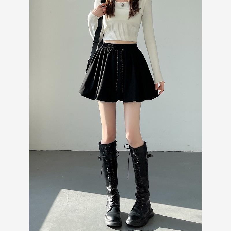 咖色松紧腰半身裙女2025秋冬新款麂皮绒A字裙百搭花苞裙遮胯短裙